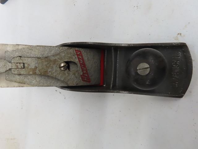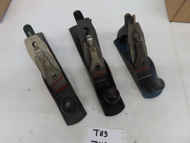3 Antique Vintage Planes: (1) 9’’ is a Stanley No. 4 with blue base + sweetheart blade - made in U.S.A. +(2nd) No. 5 Stanley Bailey 14” in length. The patent No. is April 19-10 & (3rd) handyman, Made in Canada. It ais also 14" and has the No. HI205