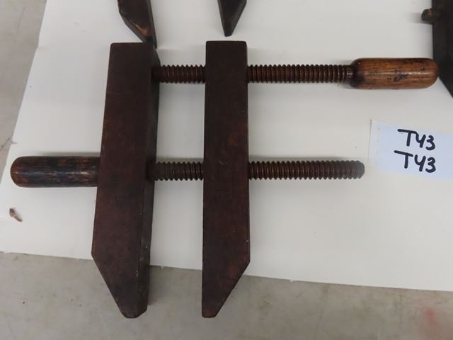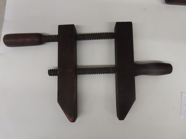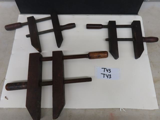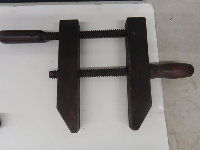 3 Antique Vintage Wooden Clamps by Bliss Manufacturing Co. The 2 smaller ones are marked No. 14 and the larger one No. 16. Very good condition for their age.