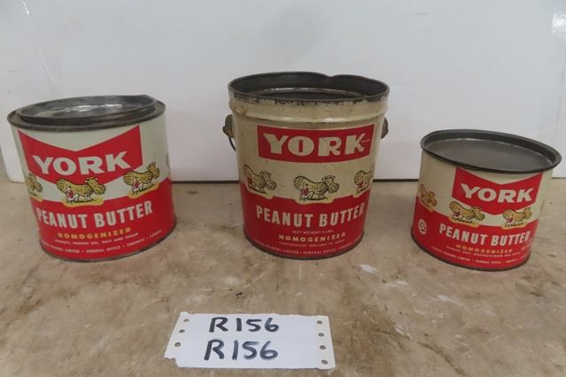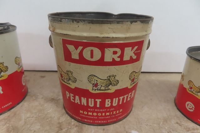 3 Assorted York Peanut Butter Tins 1 1/2'' LBS , 3 LBS , 4 LBS Tin
