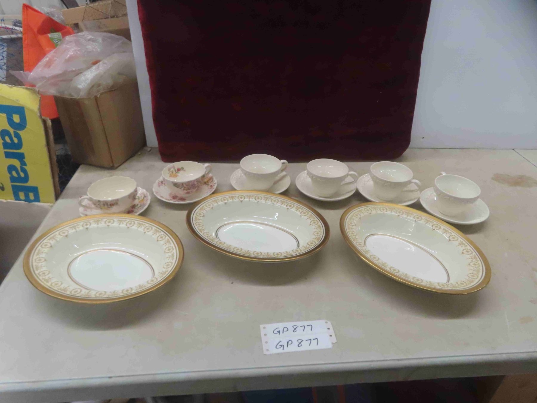 3 Aynsley Serving Bowls, 4 Wedgewood Cups and Saucers, 2 Copeland