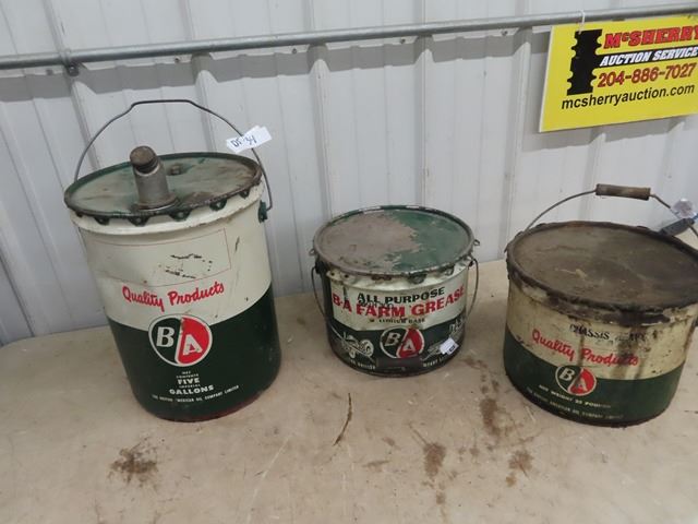 3 BA Pails 1) 5 Gal Gear OIl 1)25LB Grease 1) 25 Gal ?? Grease