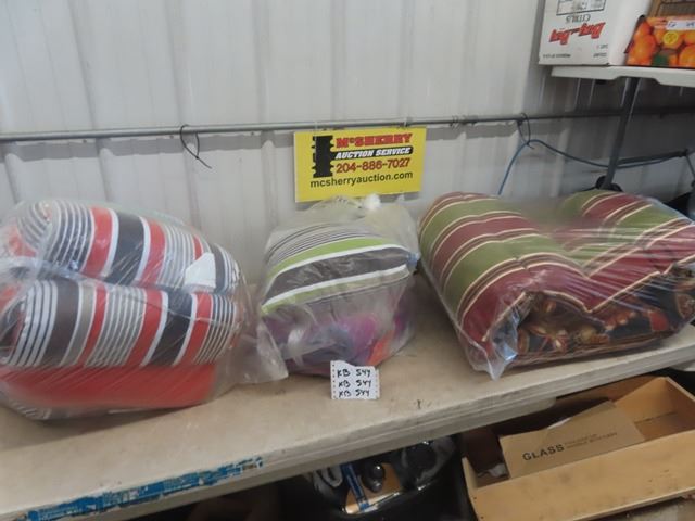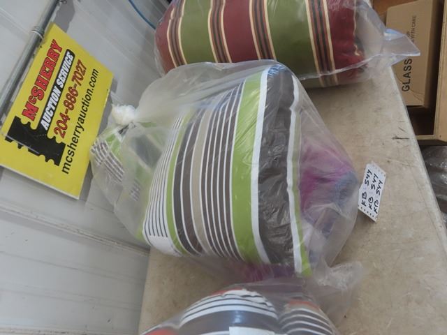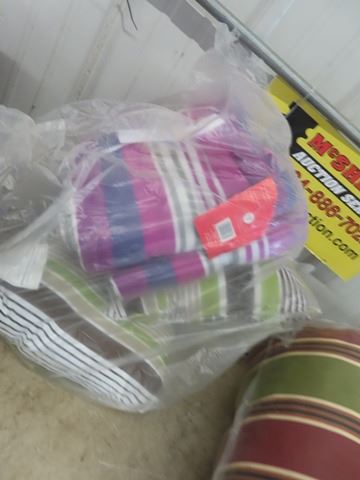 3 Bags of New Lounge Chair Cushions, Pillows & Blankets