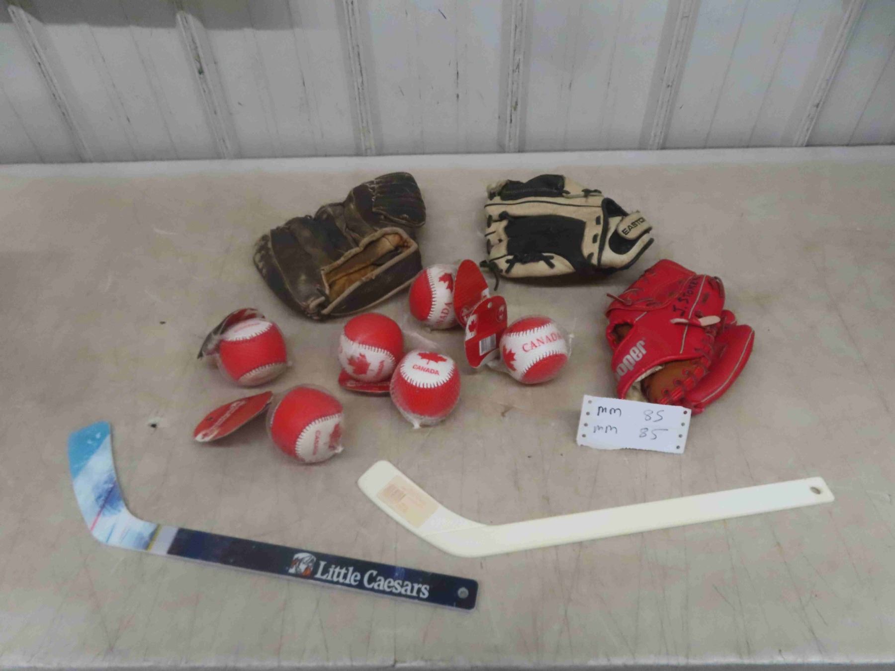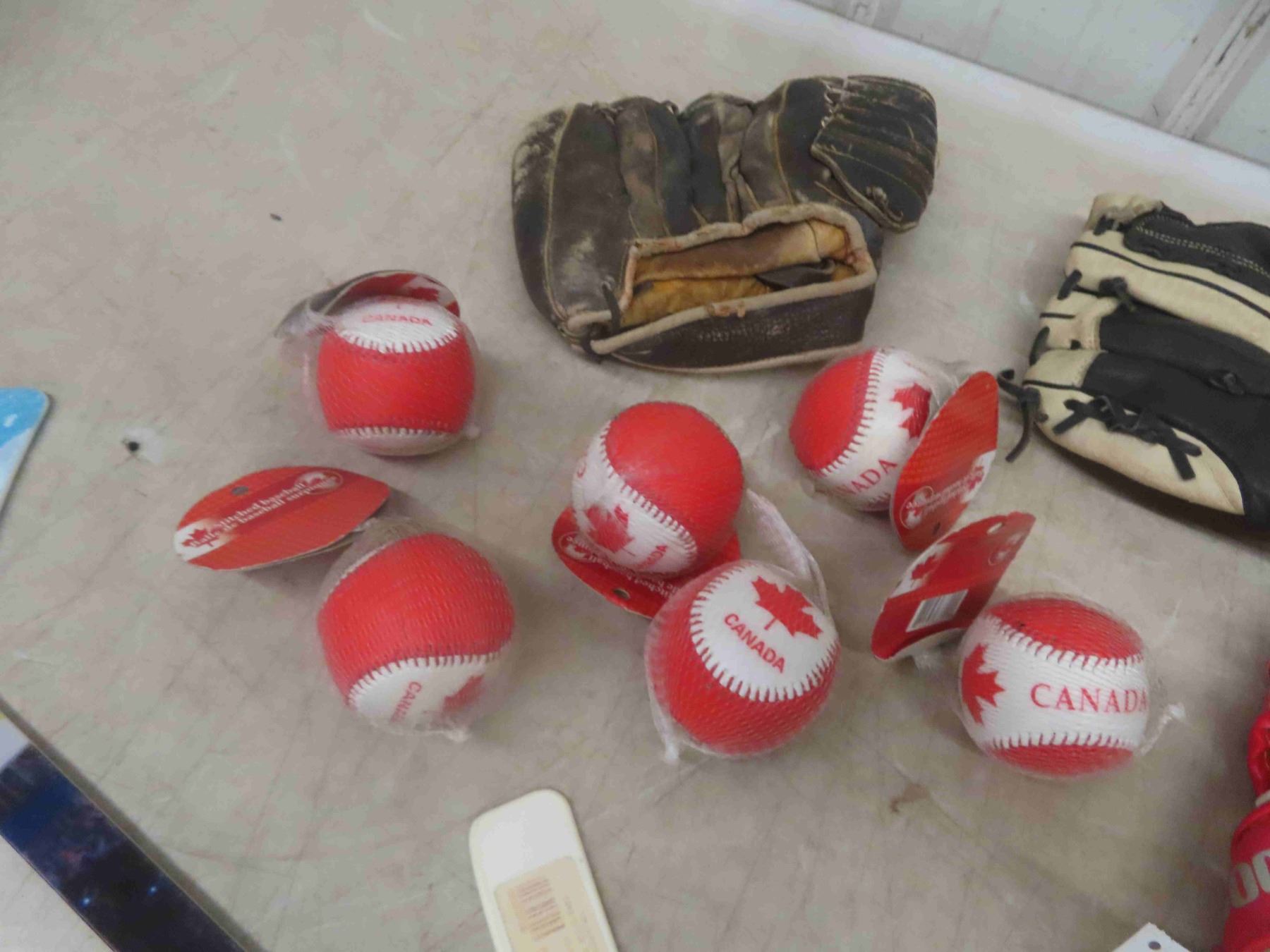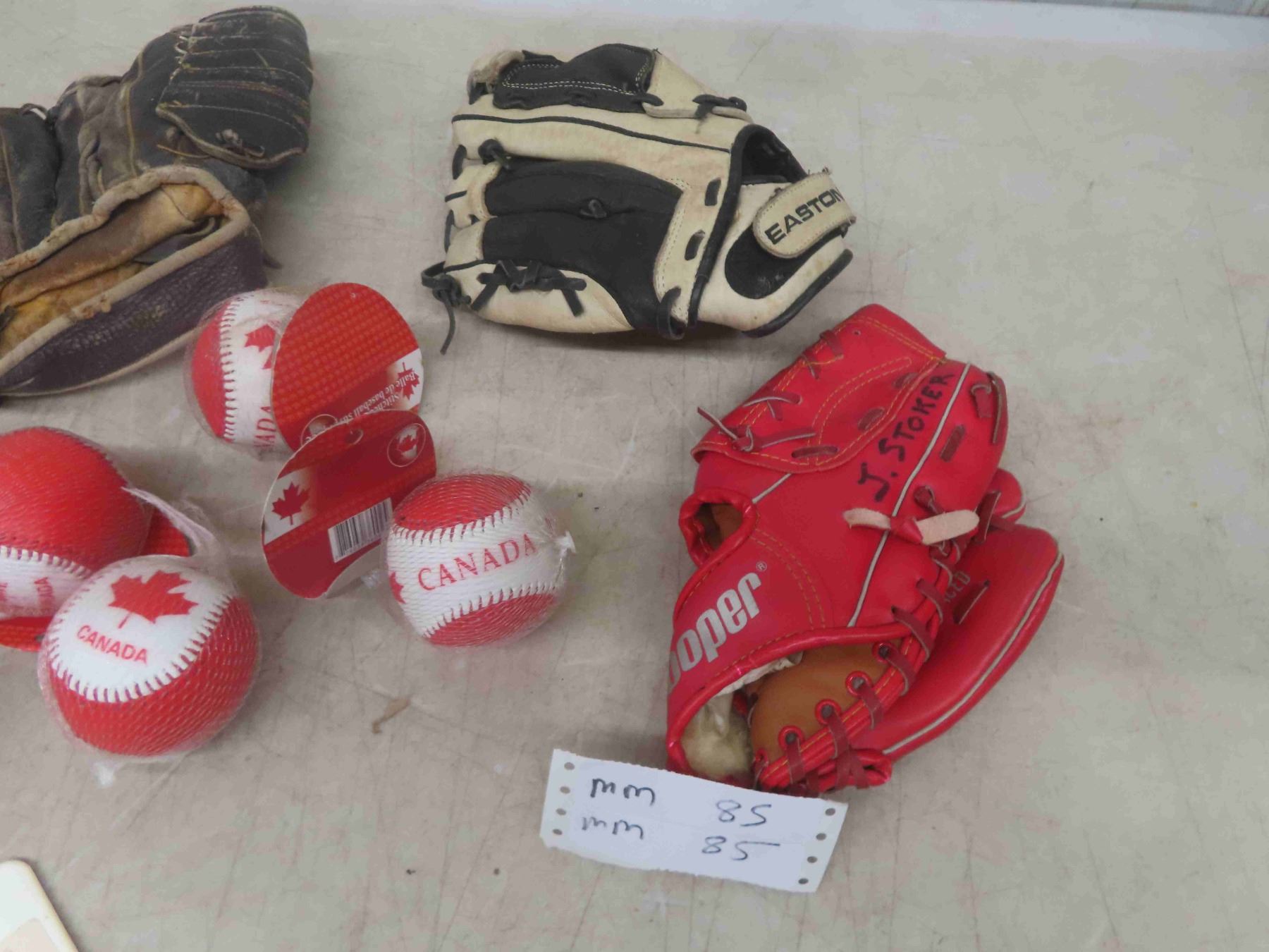 3 Baseball Gloves, 6 Brand New Canada Baseballs