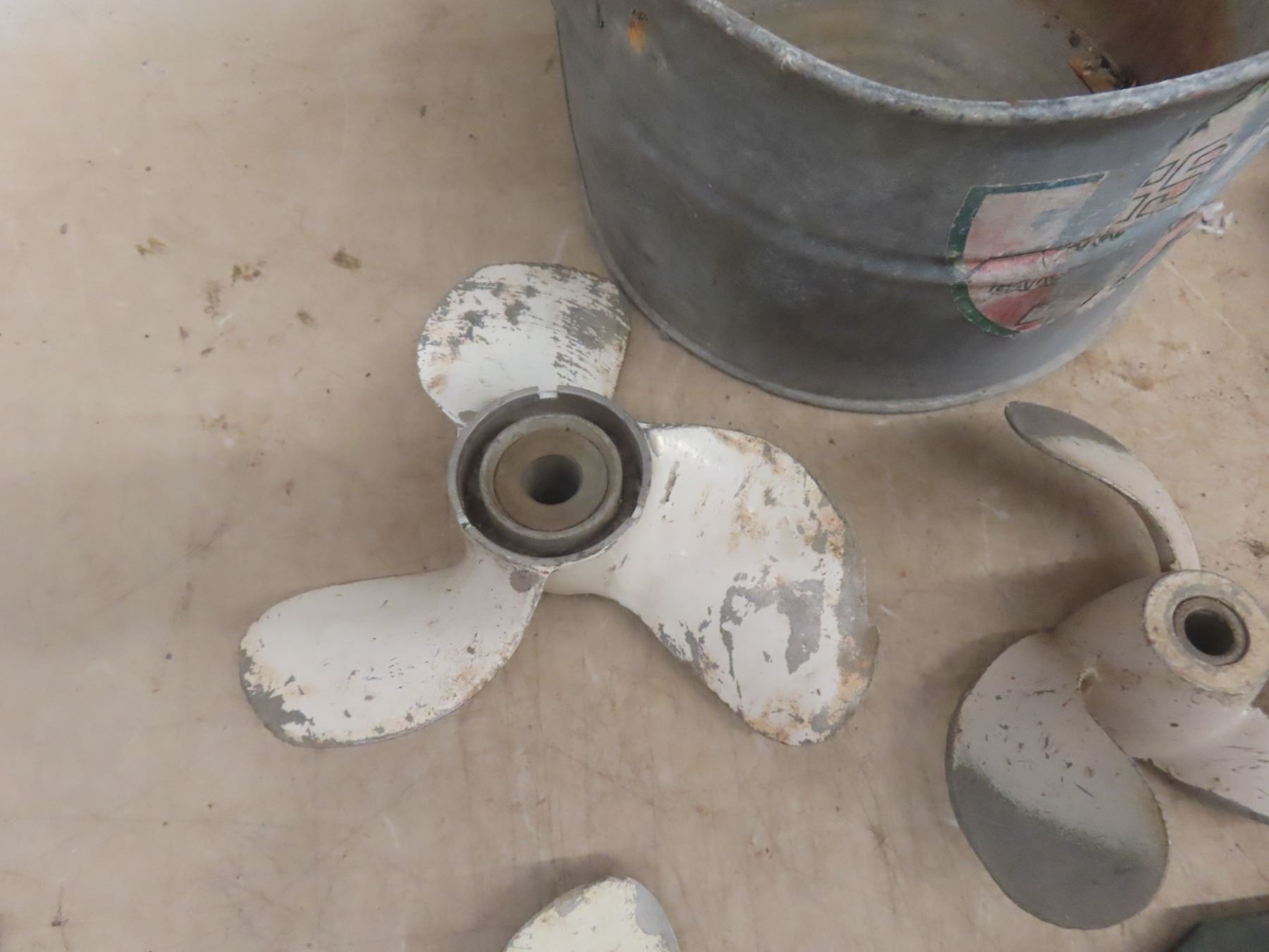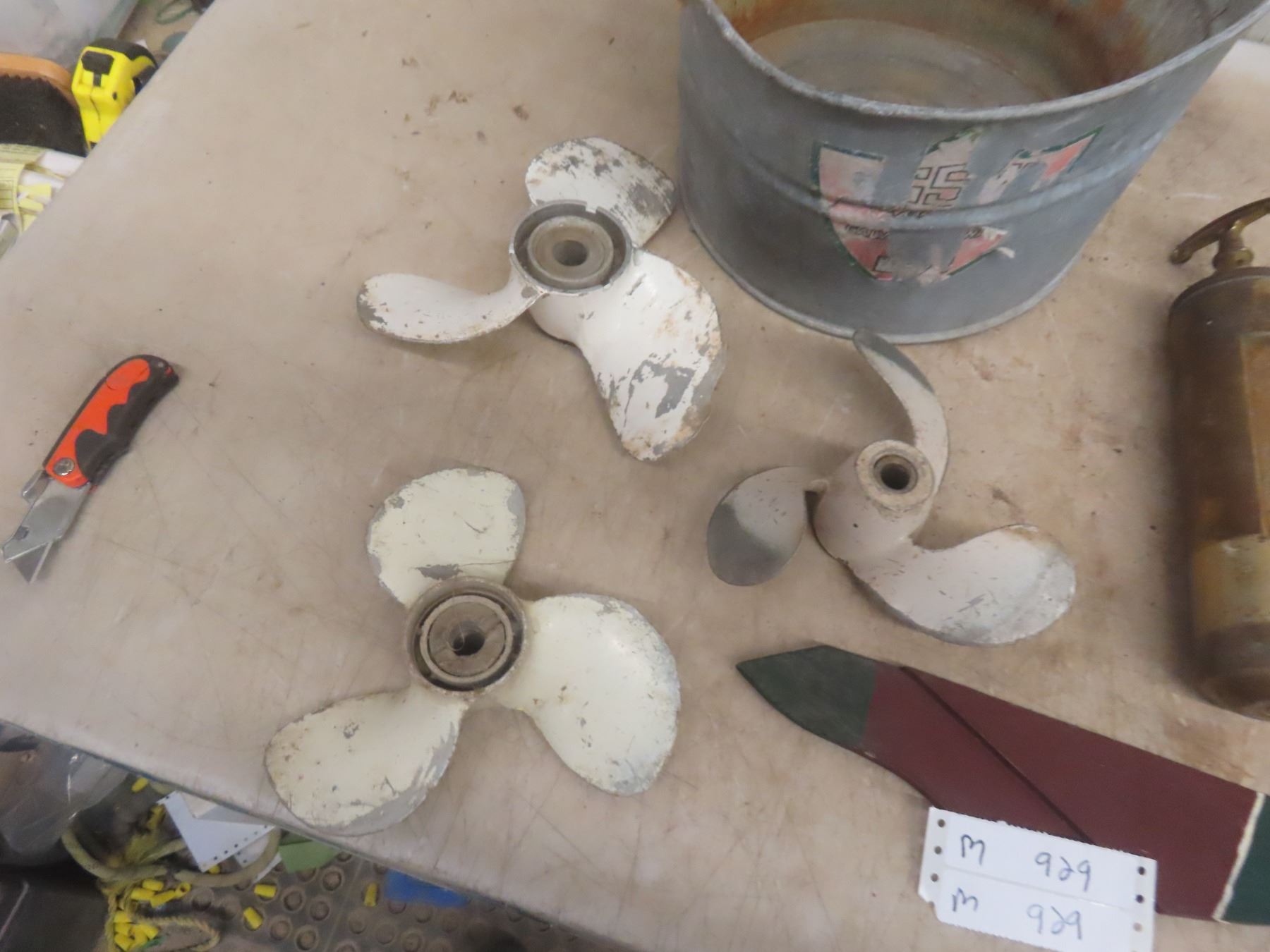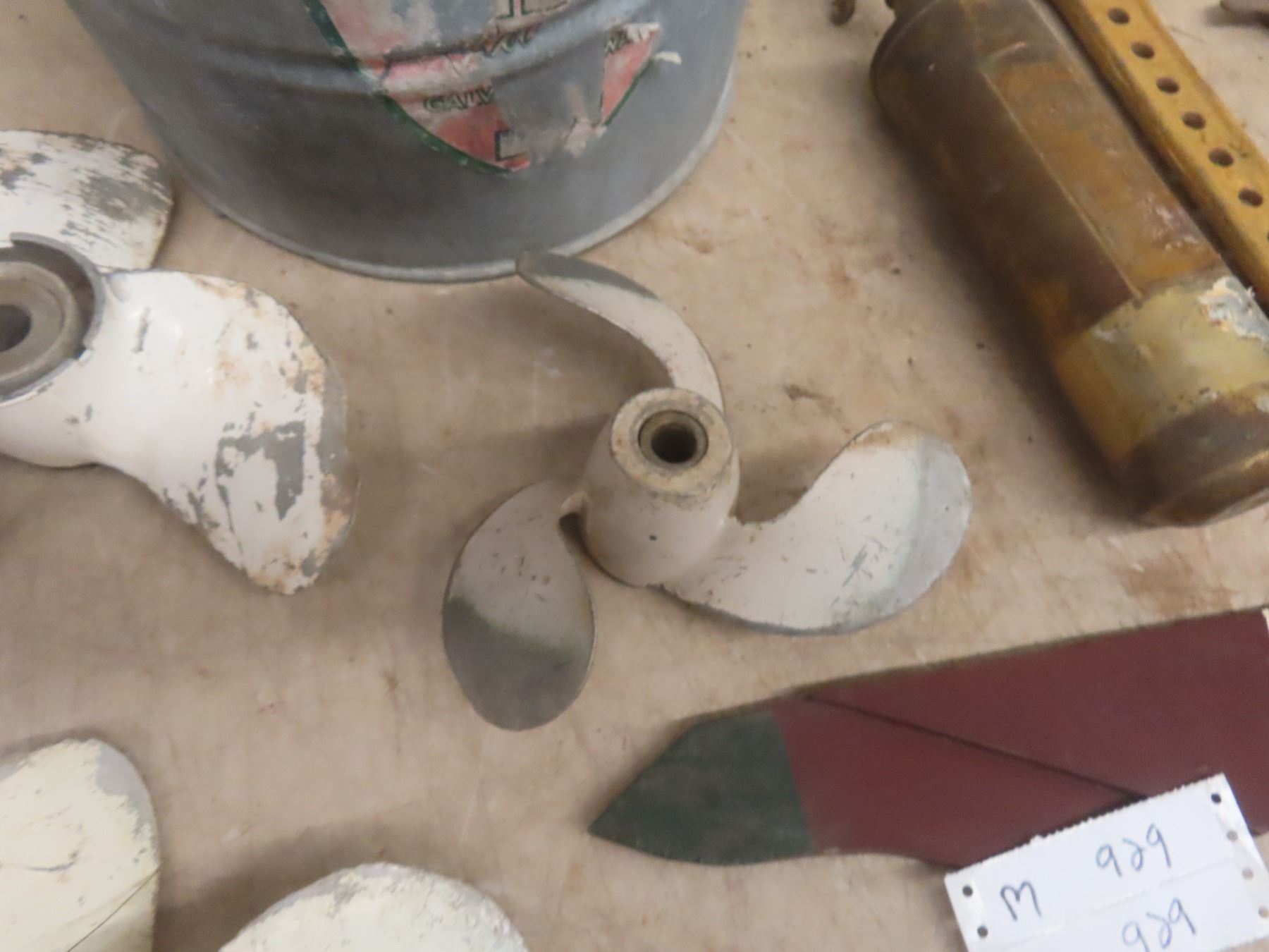 3 Boat Propeller, Brass Fire Extinguisher, Old Wrench +