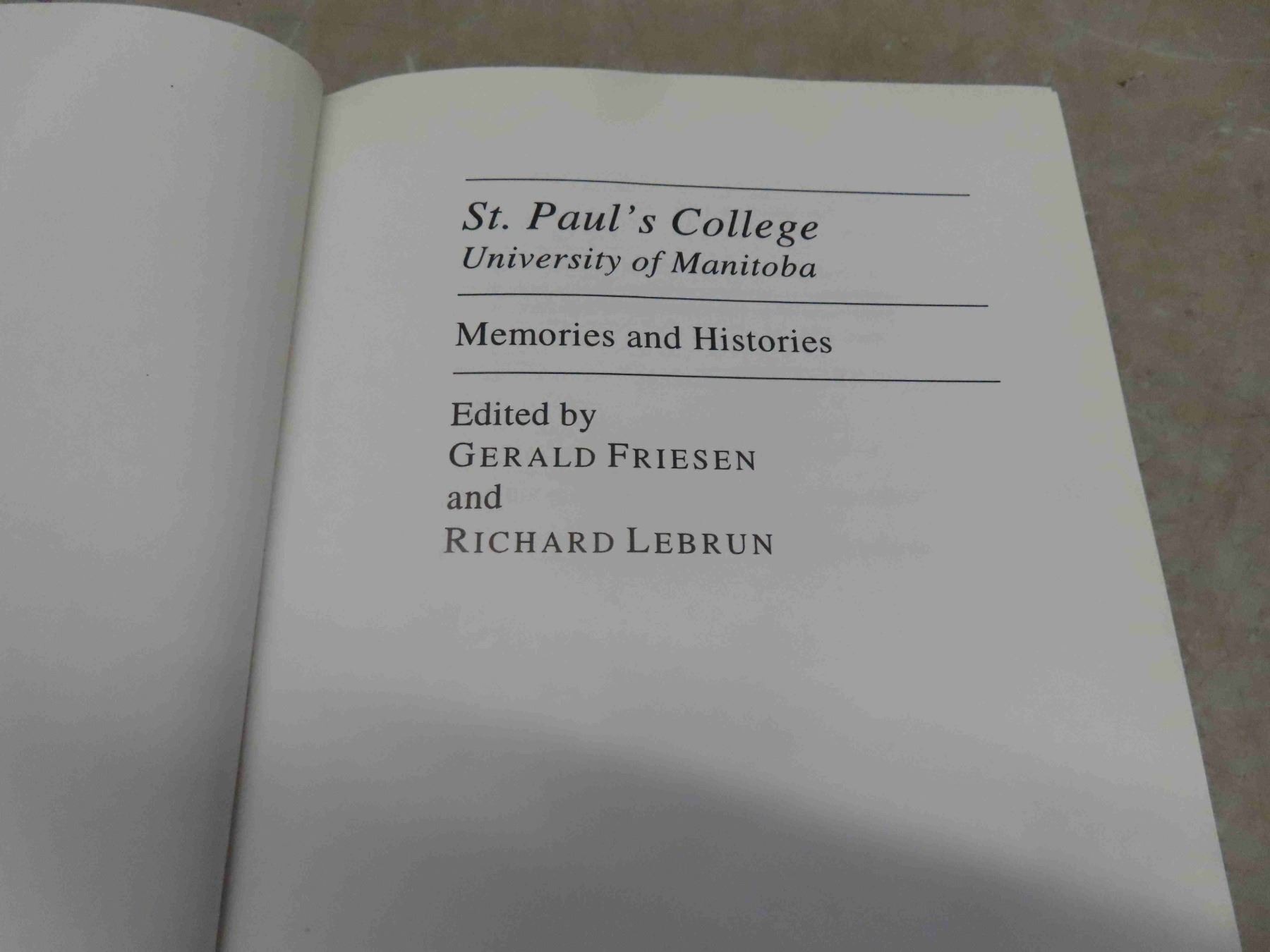 3 Books on The University of Manitoba, An Illustrated History. University of Winnipeg , a History of the Founding Colleges. ST.Pauls College, University of Manitoba Memories and Histories
