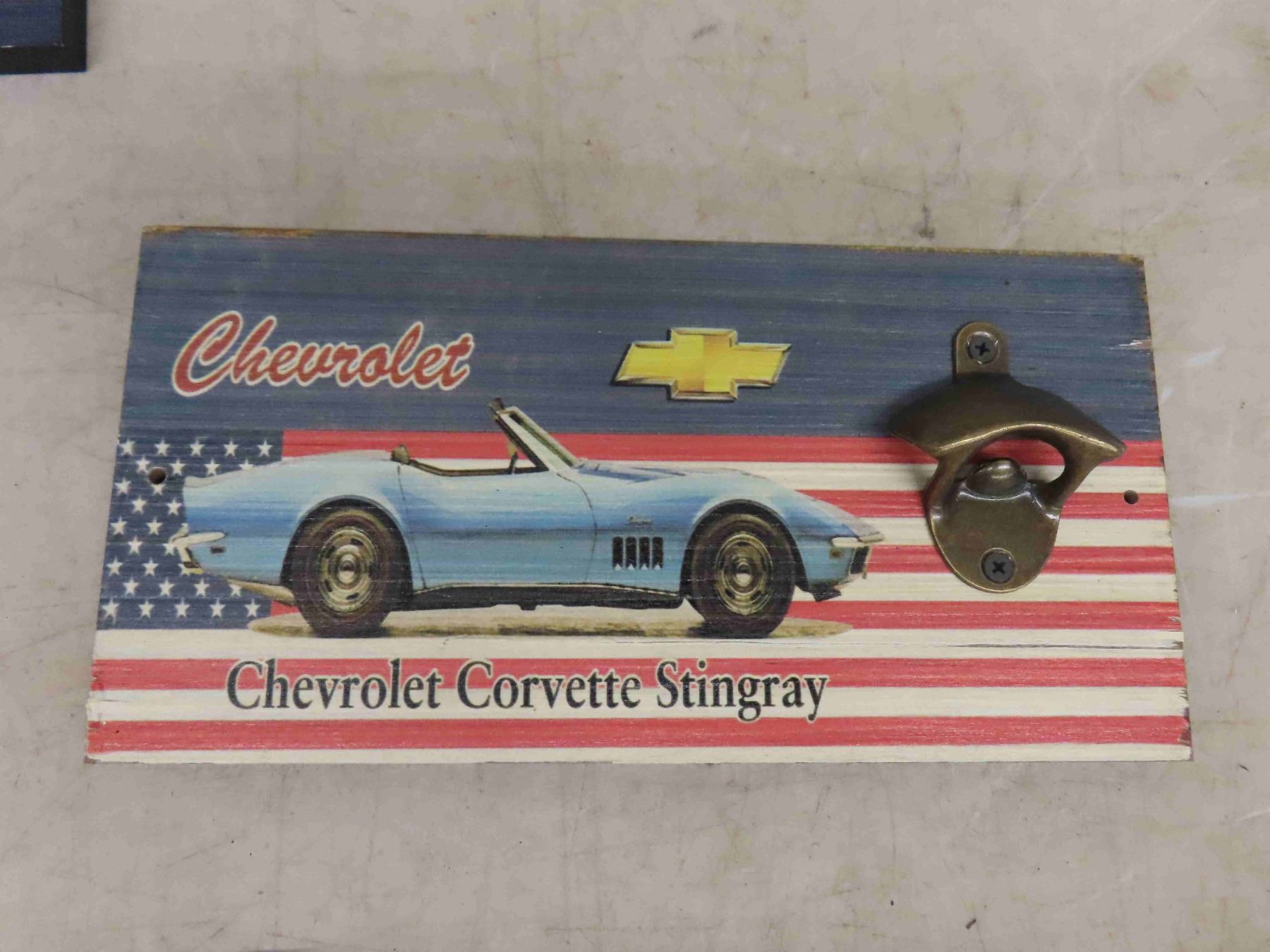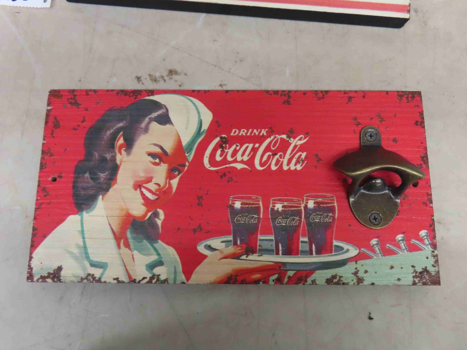 3 Bottle Openers Mounted on Wooden Blocks with Advertising 6" x 12"