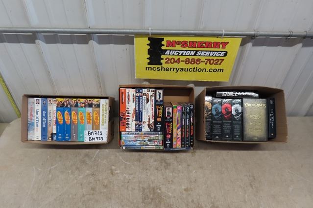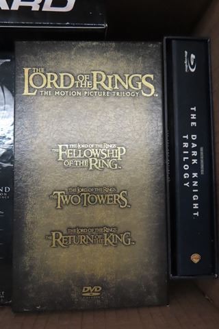 3 Boxes of DVDs- Many TV Shows ; Seinfeld, Office, Arrested Development, Pinky + The Brain, James Bond Sets, Lord of The Rings Trilogy