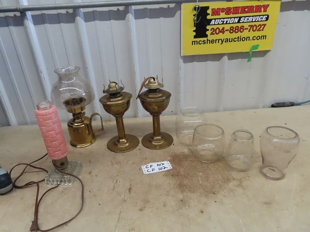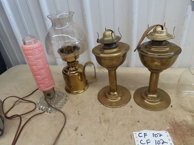 3 Brass Coal Oil Lamps , Bedroom Elec Lamp & Lanter Fonts