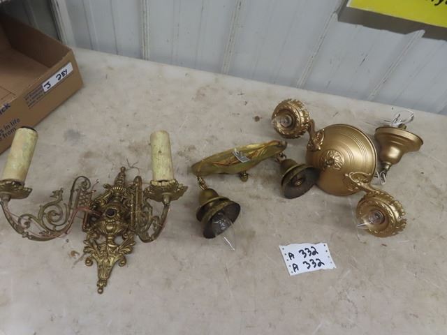 3 Brass Light Fixtures - Ceiling & Wall Mount