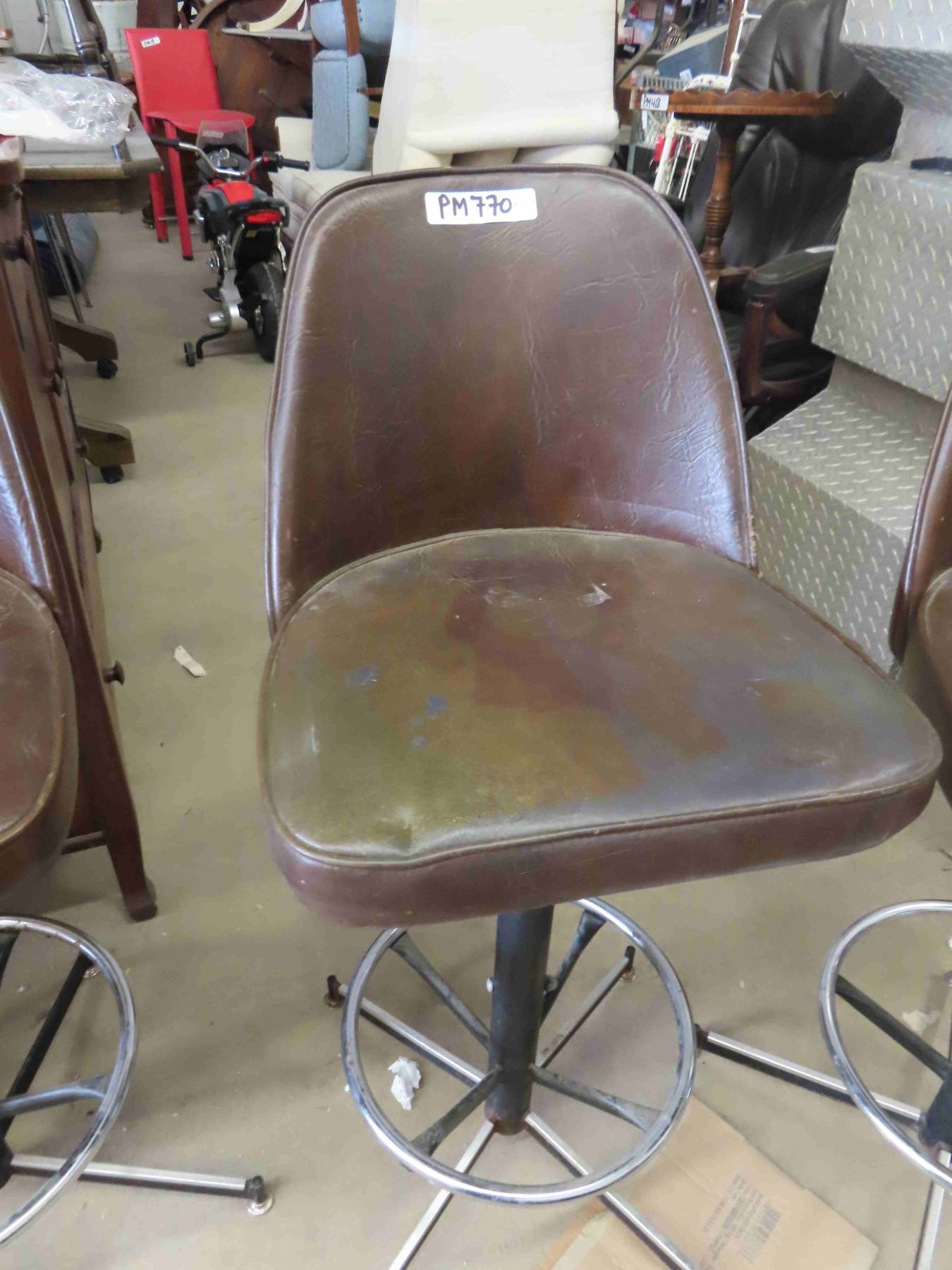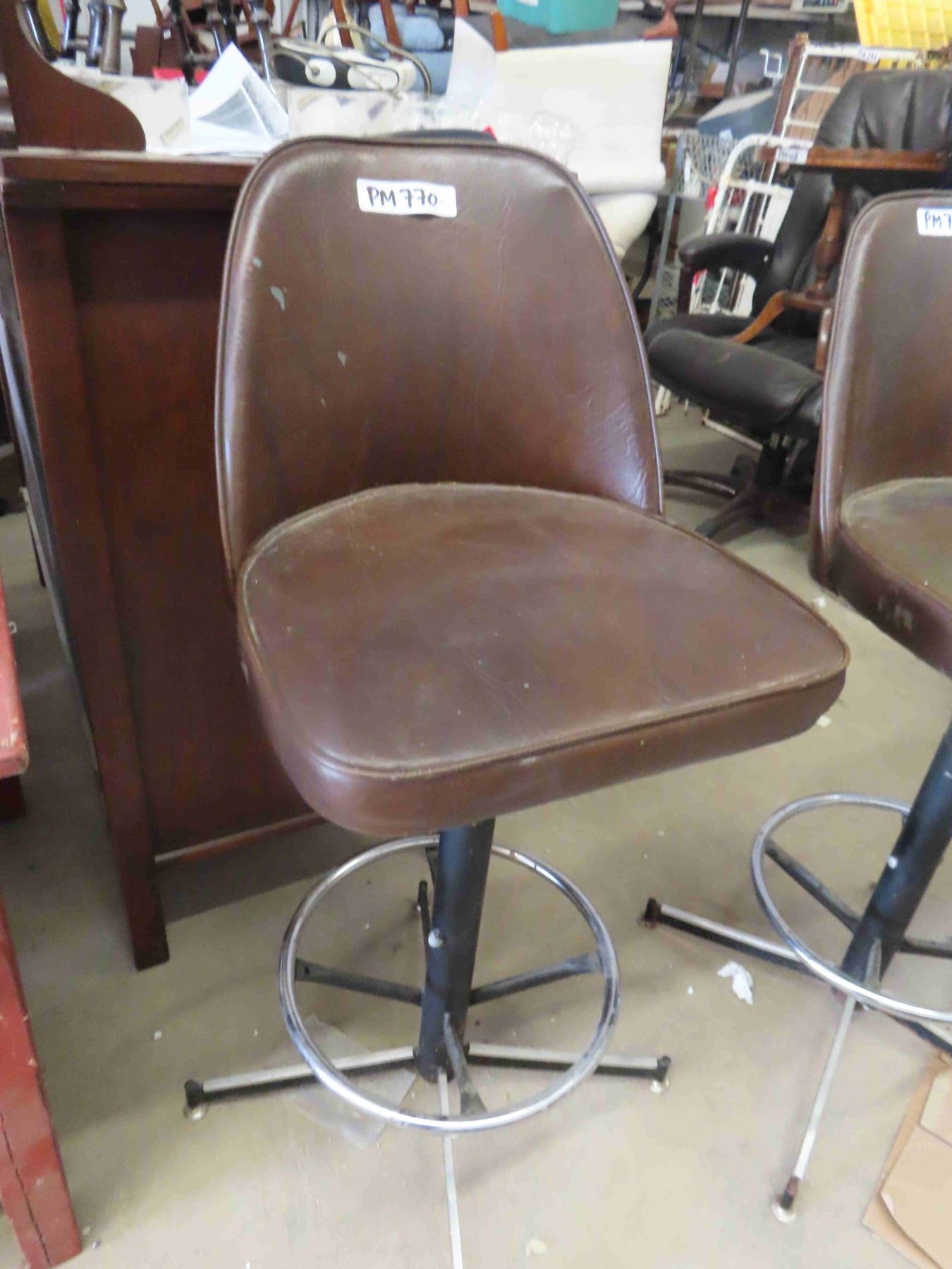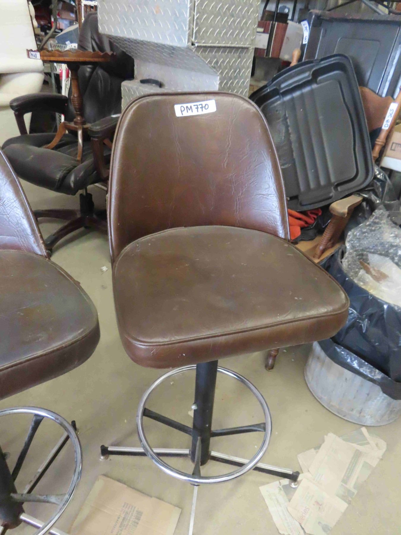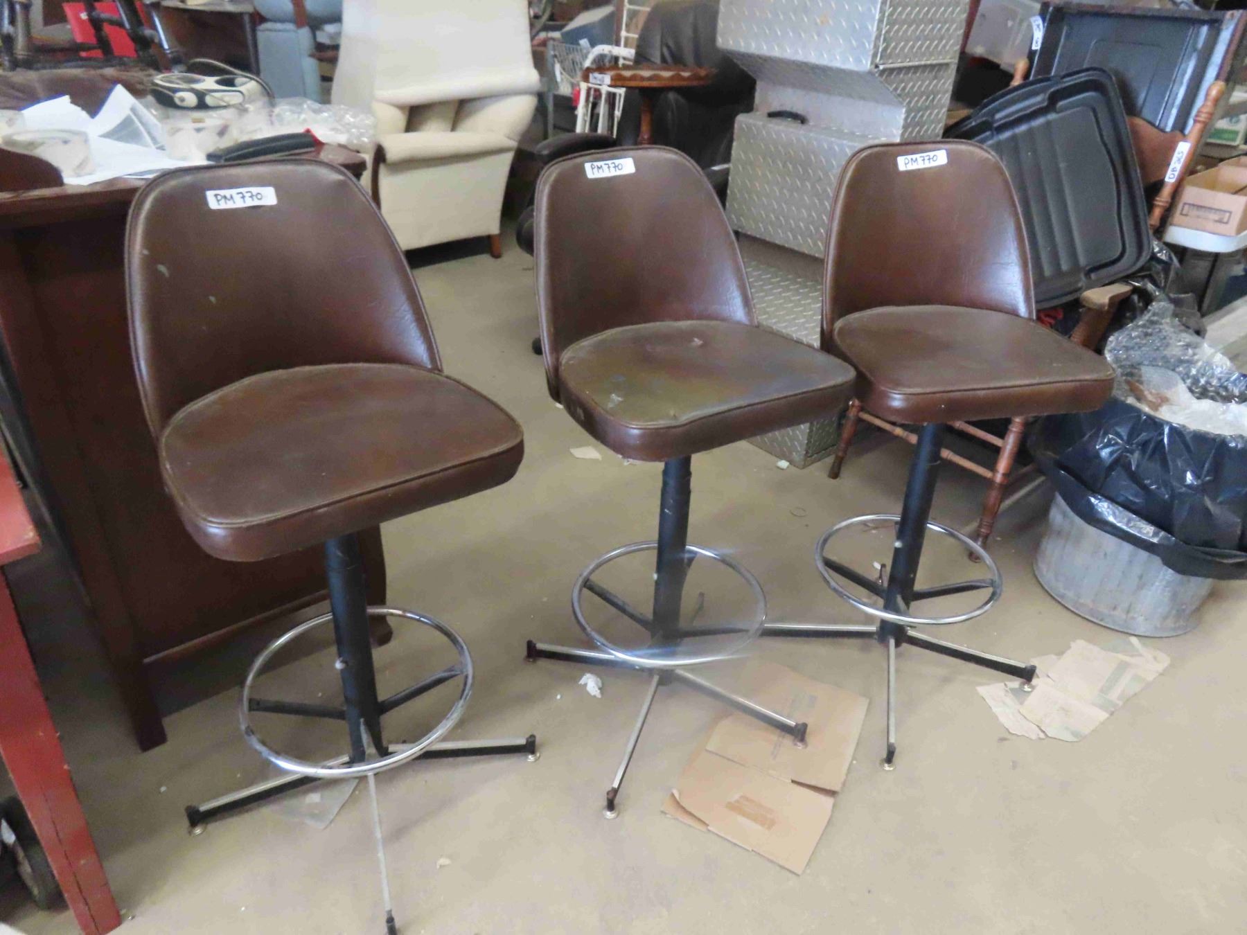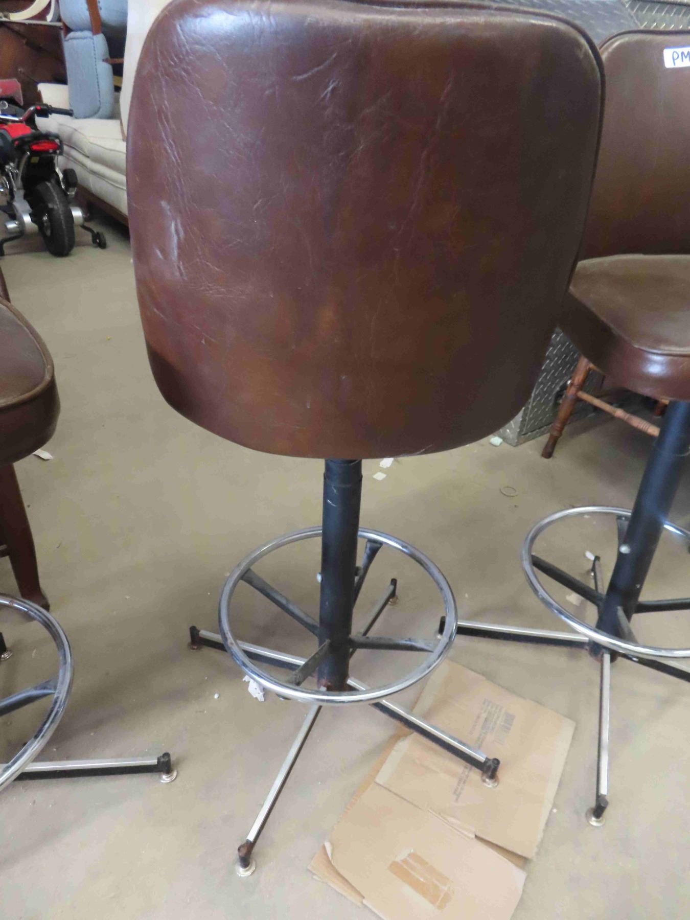 3 Brown Vinyl Swivel Bar Stools 40'' Tall