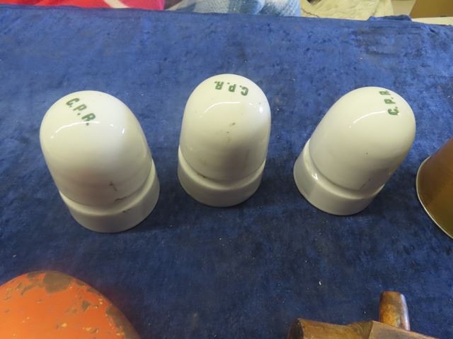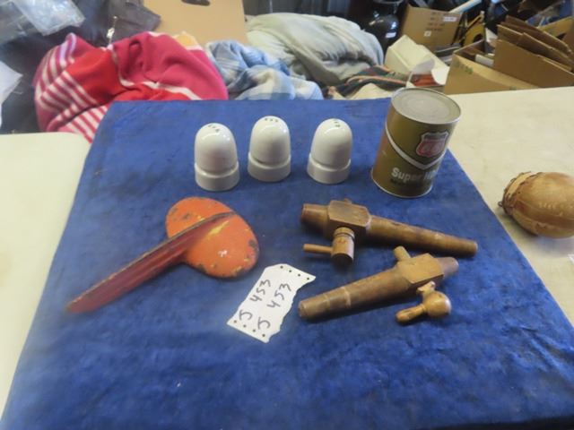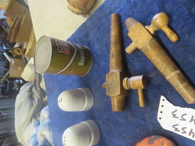 3 CRR Insulator, Cast Tractor Rad Topper, Phillips 66 Oil Can, 2 Wooden Spigots