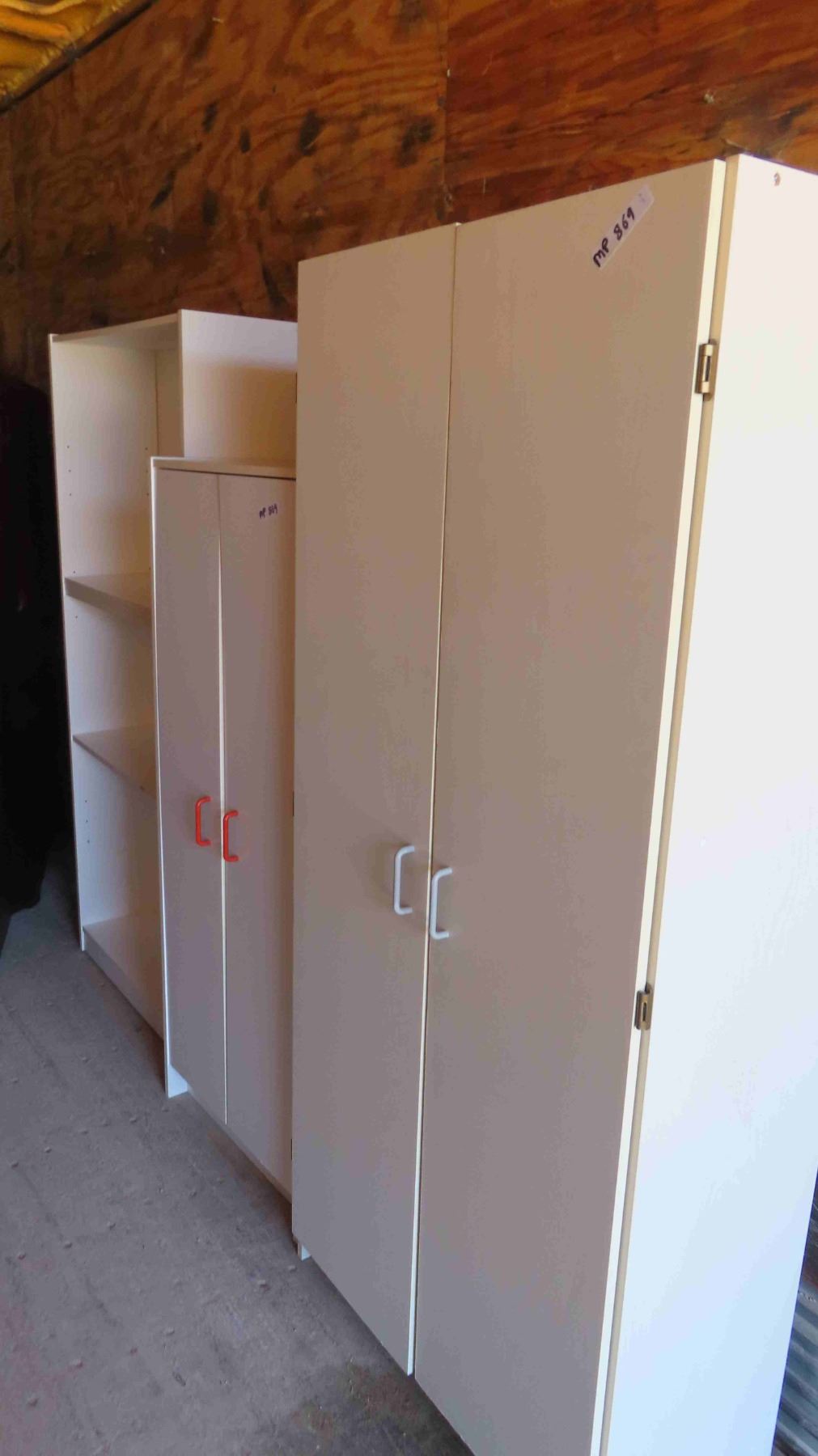 3 Cabinets with Shelving ; Open 12" x 32" x 71", 2 Door 15" x 24" x 60", 2 Door 16" x 32" x 72"