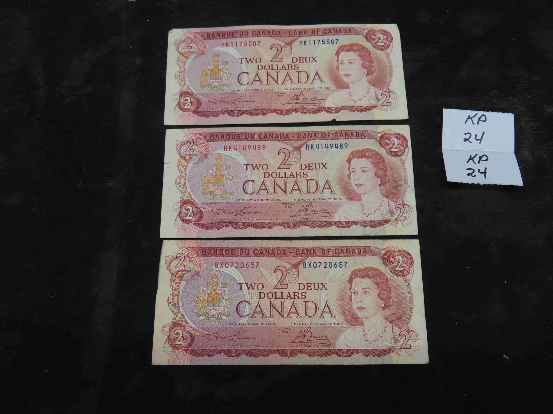 3 Canada 1974 $2 Bills