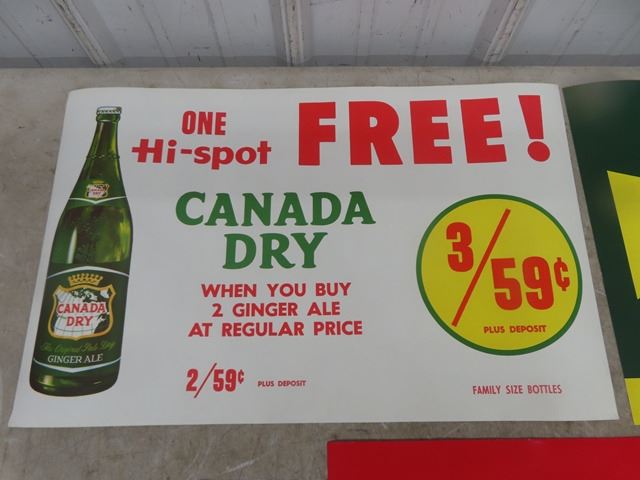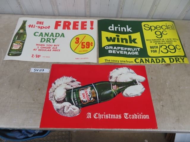 3 Canada Dry Paper Signs 14" x 22"