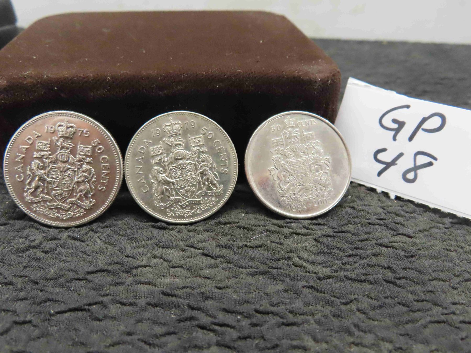 (3) Canadian 50 Cent Coins 1970,1975,2012