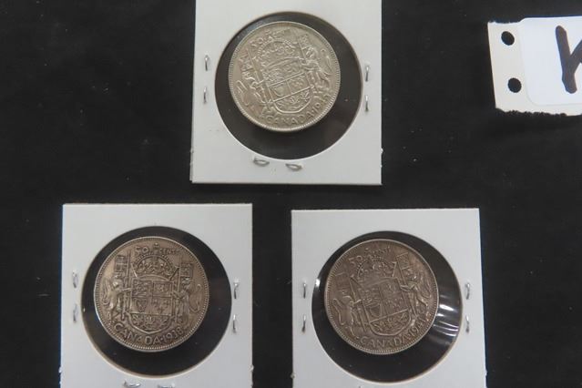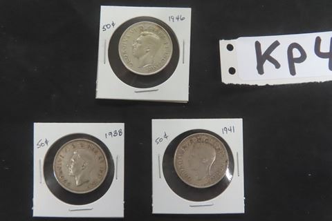 3 Canadian 50 cent Coins ; 1938, 1941, 1946