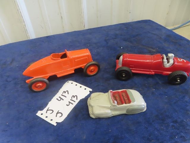 3 Cars; 1) Cast - No Markings, 1) Metal Hubley 1) Plastic Argur