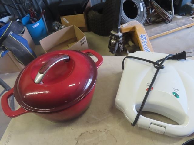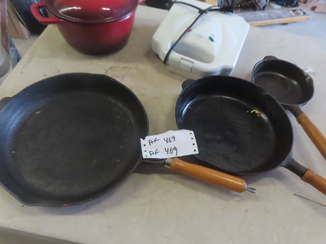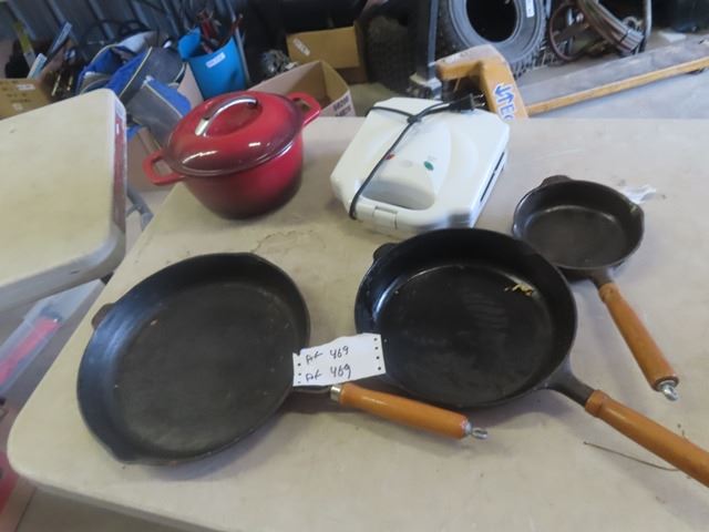 3 Cast Frying Pans, Kitchen Aid Pot & Waffle Maker