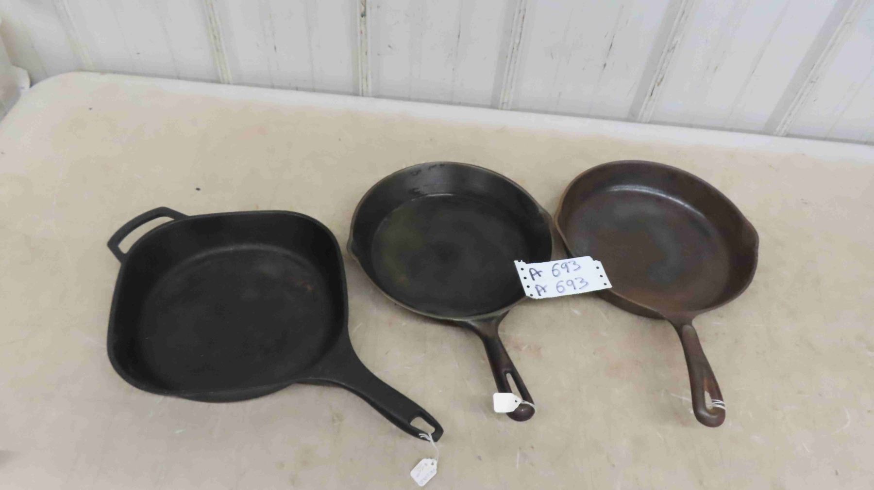 3 Cast Frying Pans - Wagner, Levco, Paderno