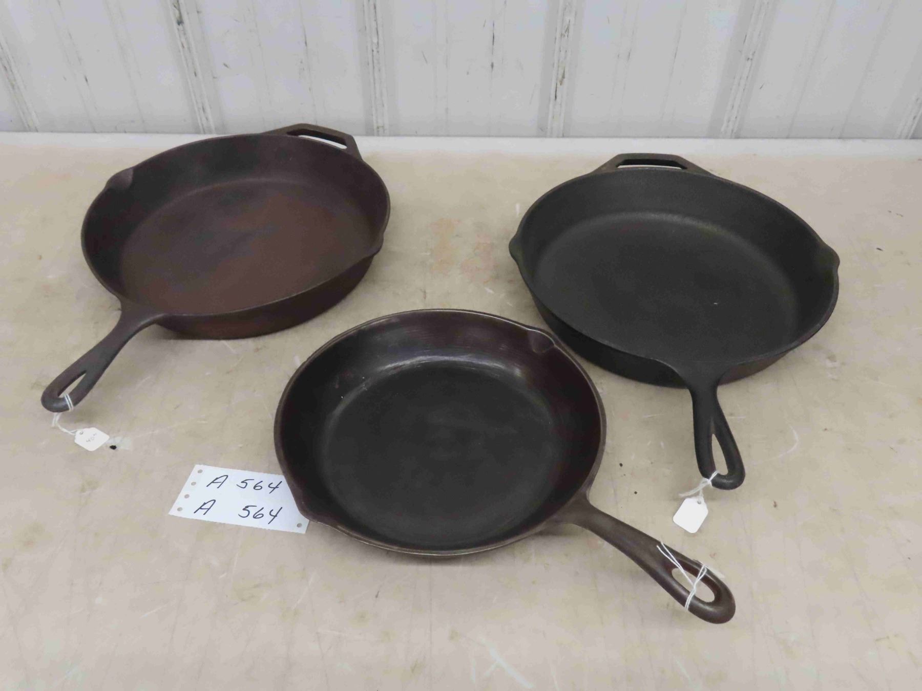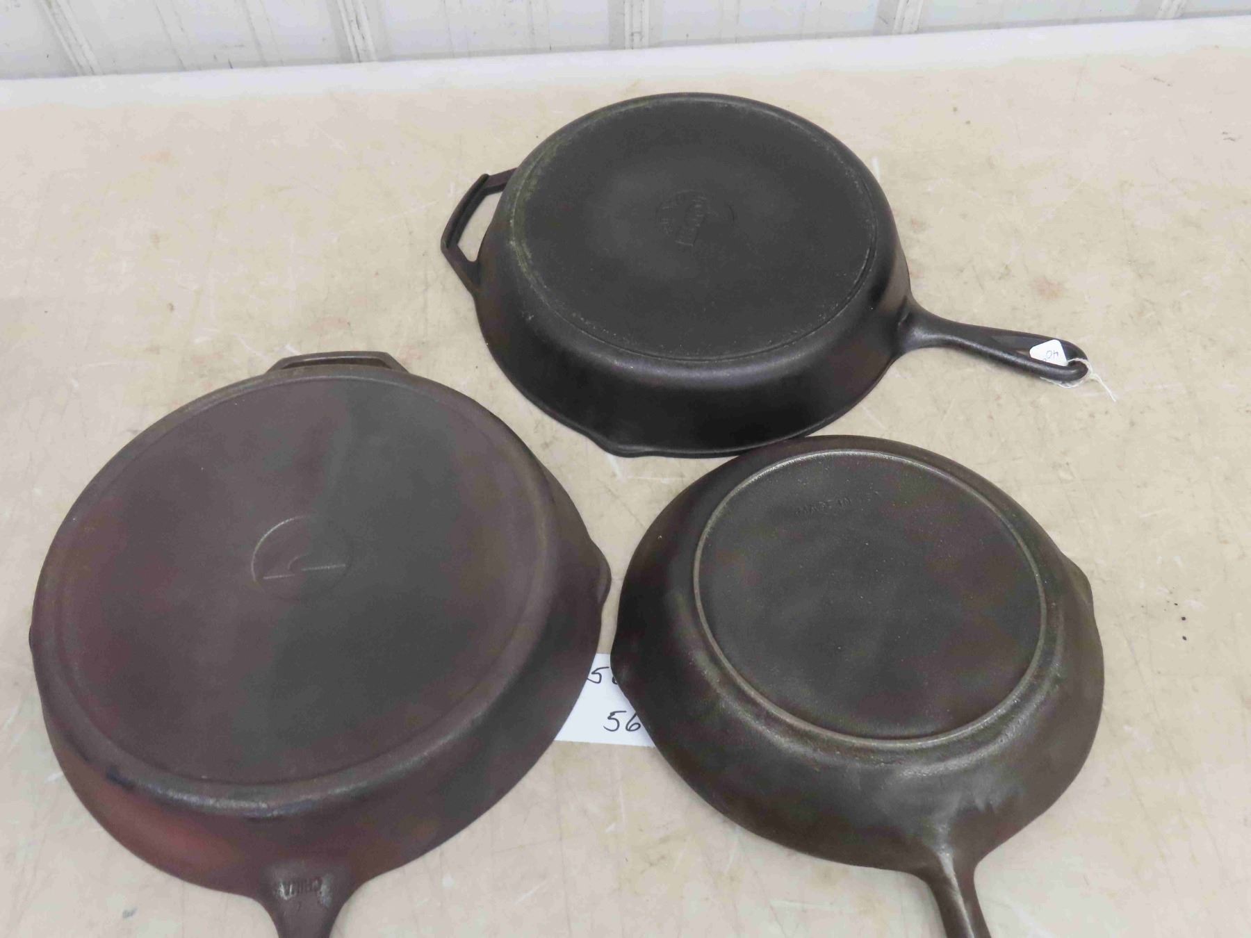 3 Cast Iron Frying Pans (2) 12'' & (1) 10''