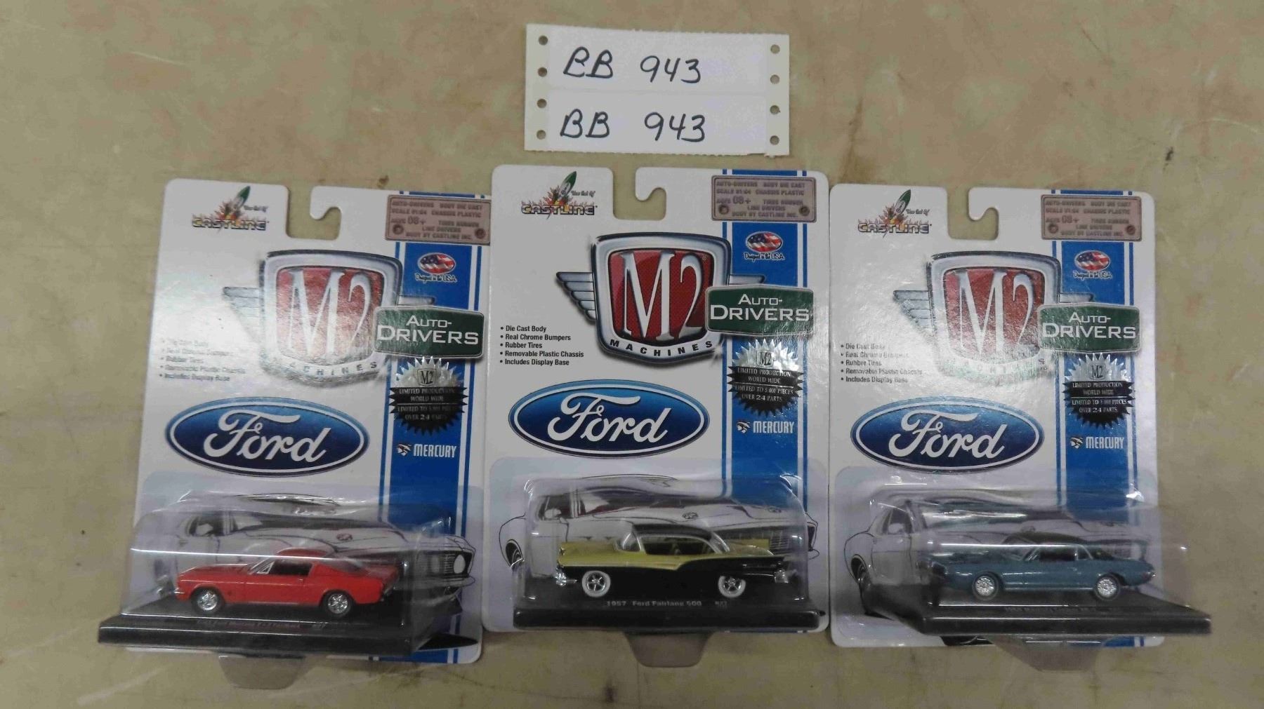 3 Cast Line Ford M2 Machines : 1957 Ford Fairlane 500, 1965 Ford Mustang 2x2 Fastback, 1968