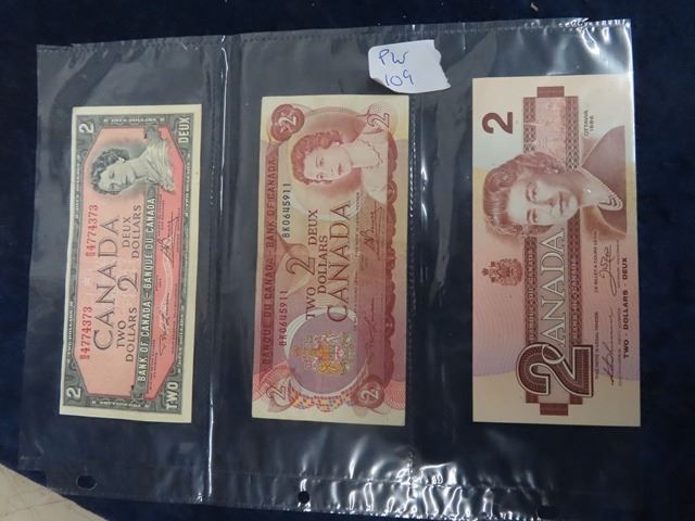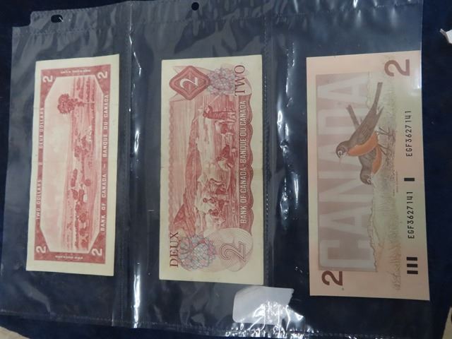 3 - Cdn $2 Bills 1954, 1974 & 1986