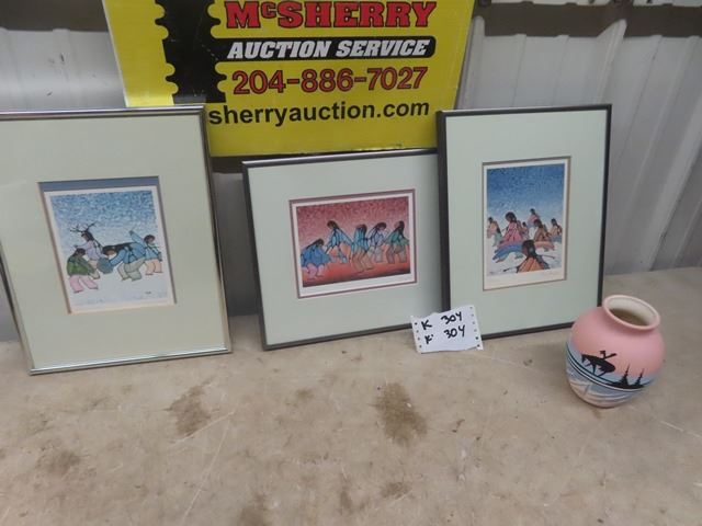 3 Cecil Youngfox Framed Prints- Signed & Hand Made Vase