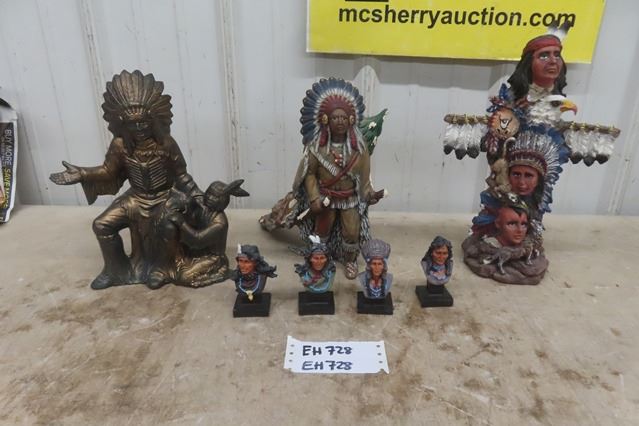 3 Ceramic Native Figures/Statues, 4 Small Native Resin Figures