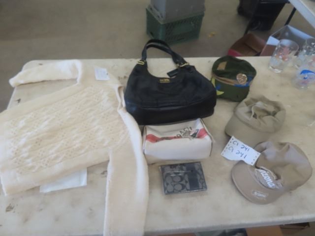 3 Coach Purses + Wallet, Hand Knitted Sweater, 3 Hats