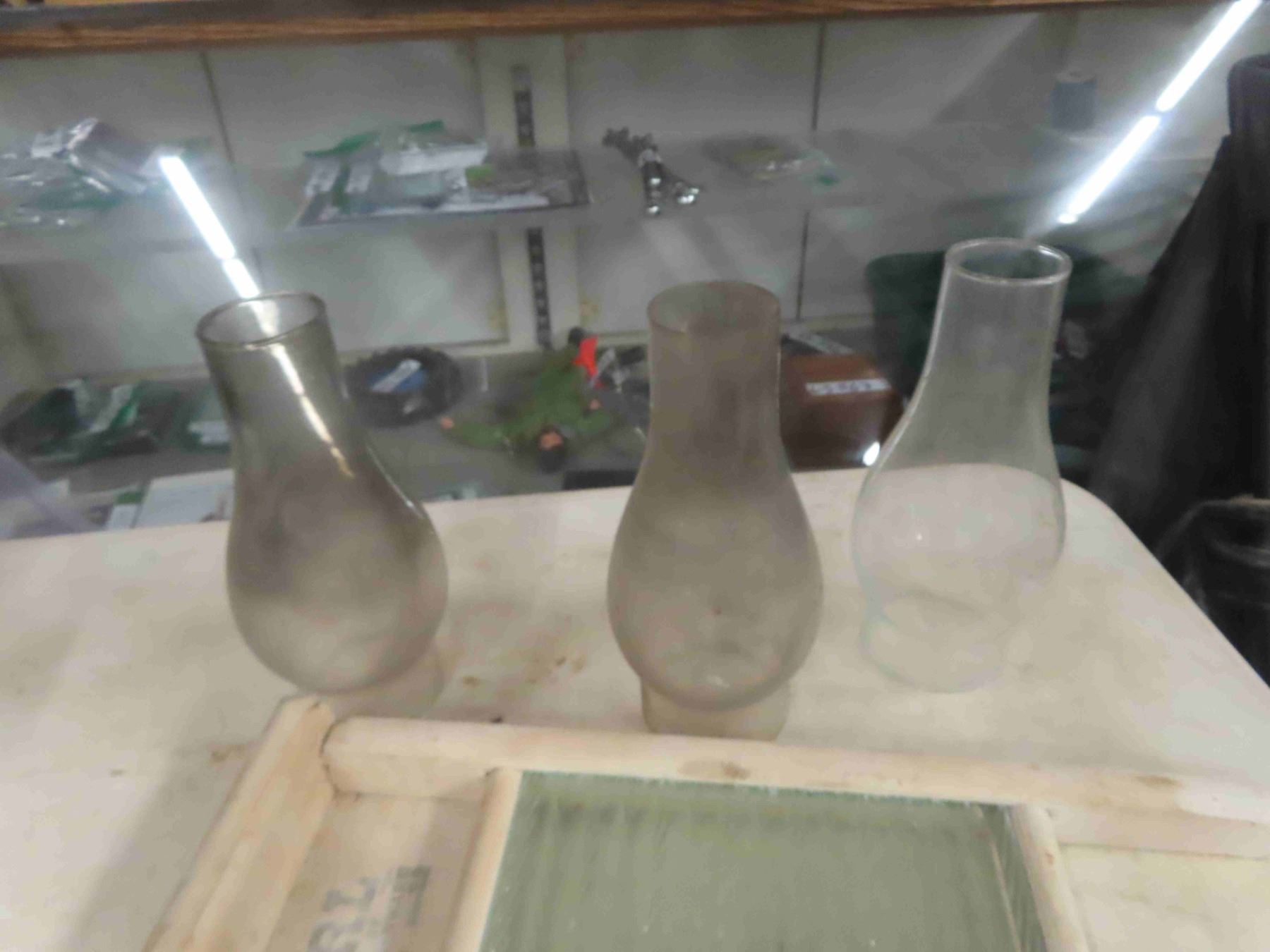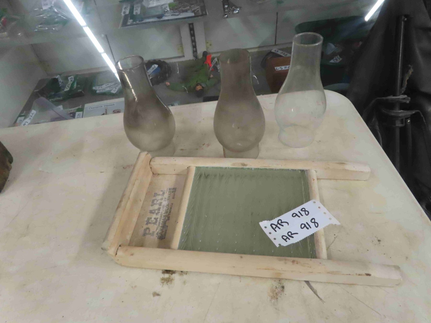 3 Coal Oil Lamp Chimneys & Washboard