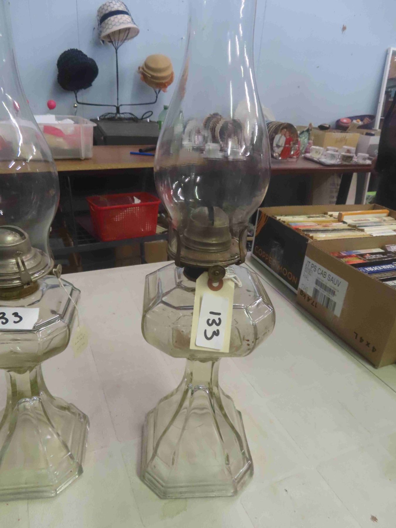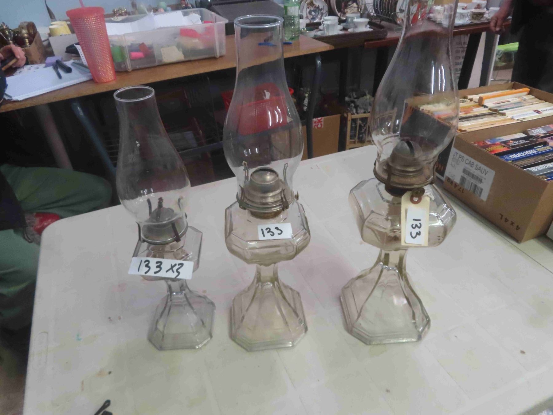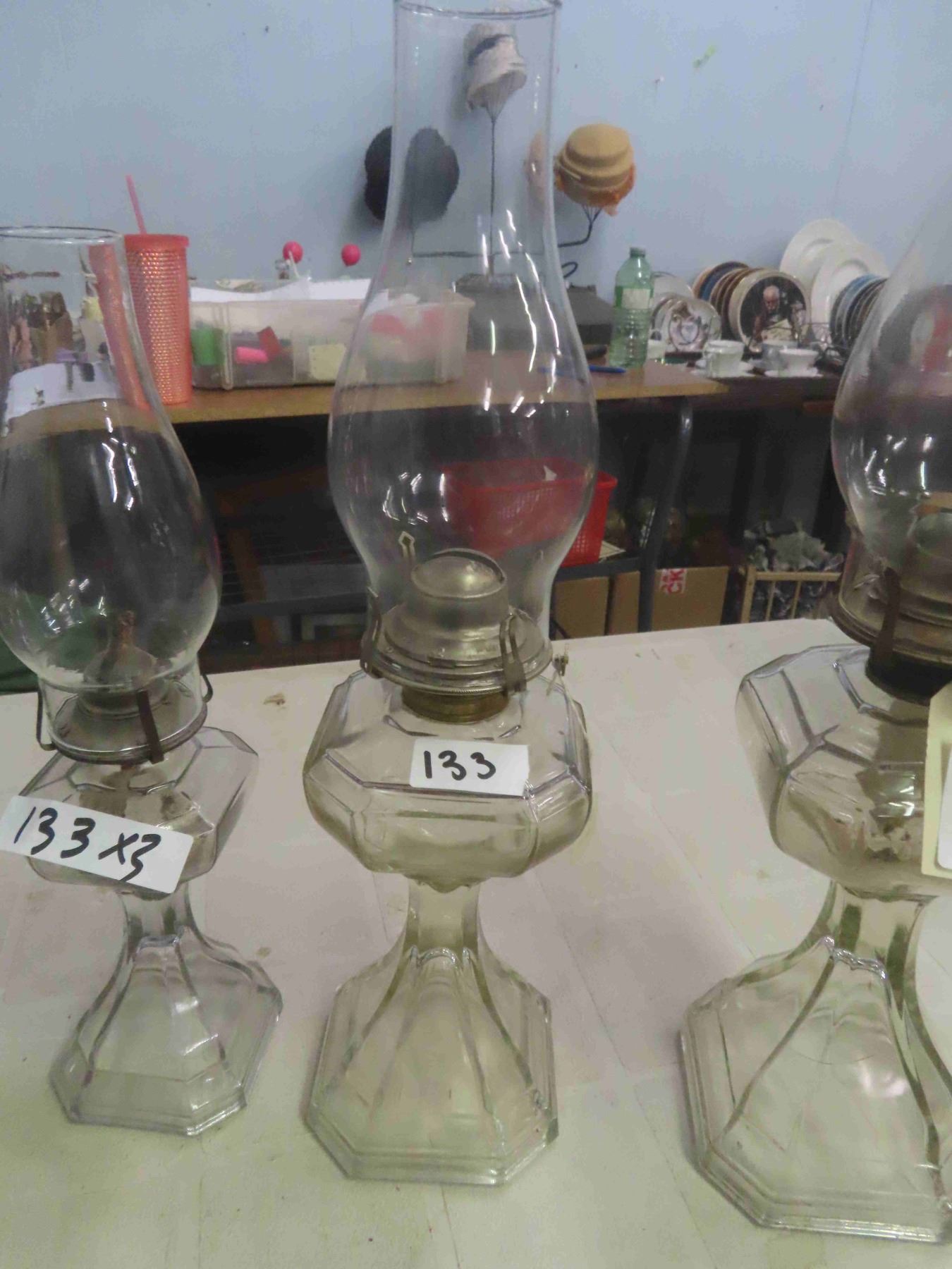 3 Coal Oil Lamps with Chimneys