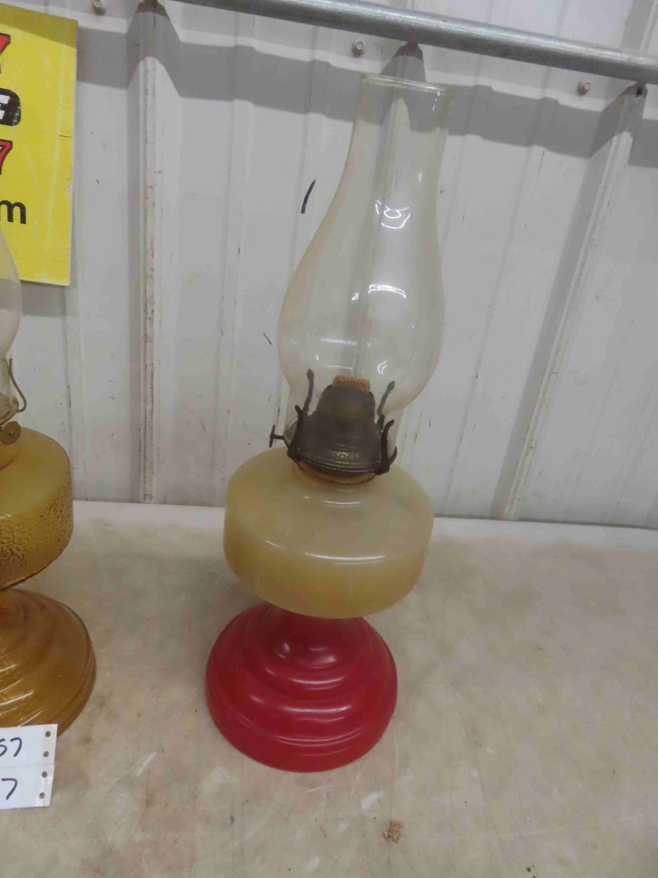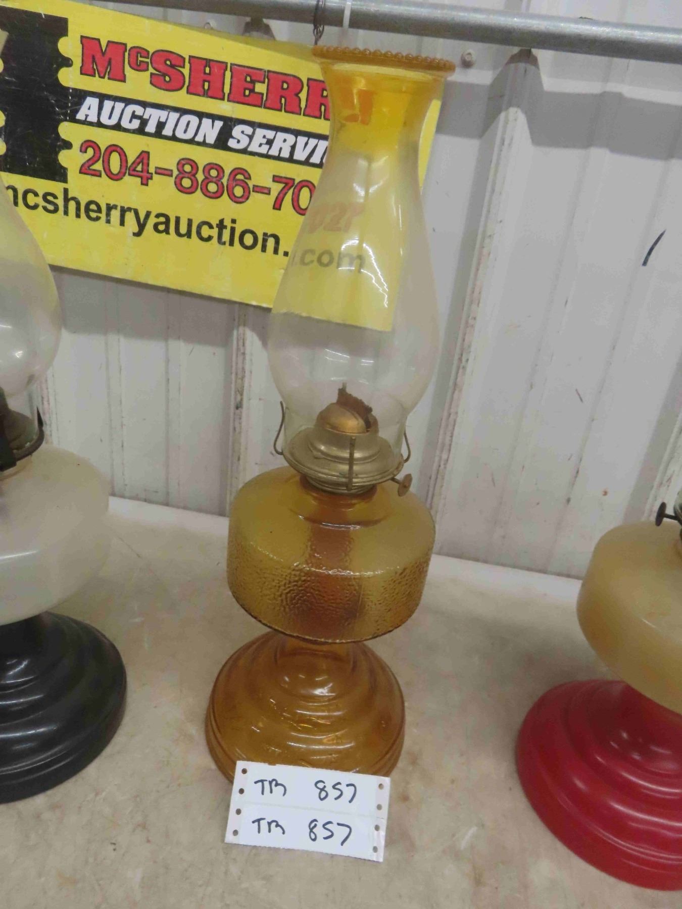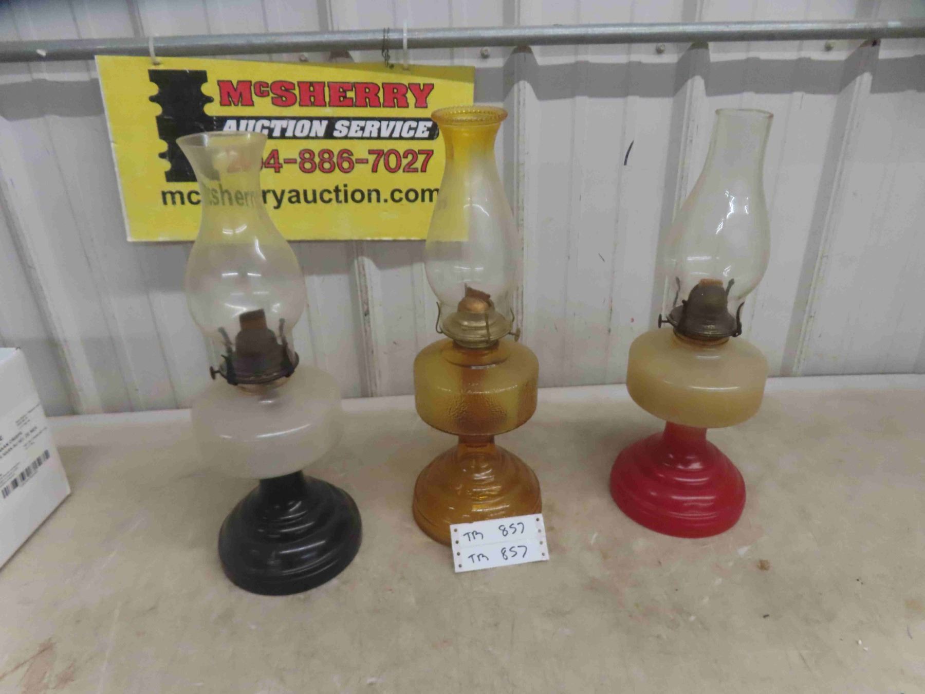 3 Coal Oil Lamps with Chimneys