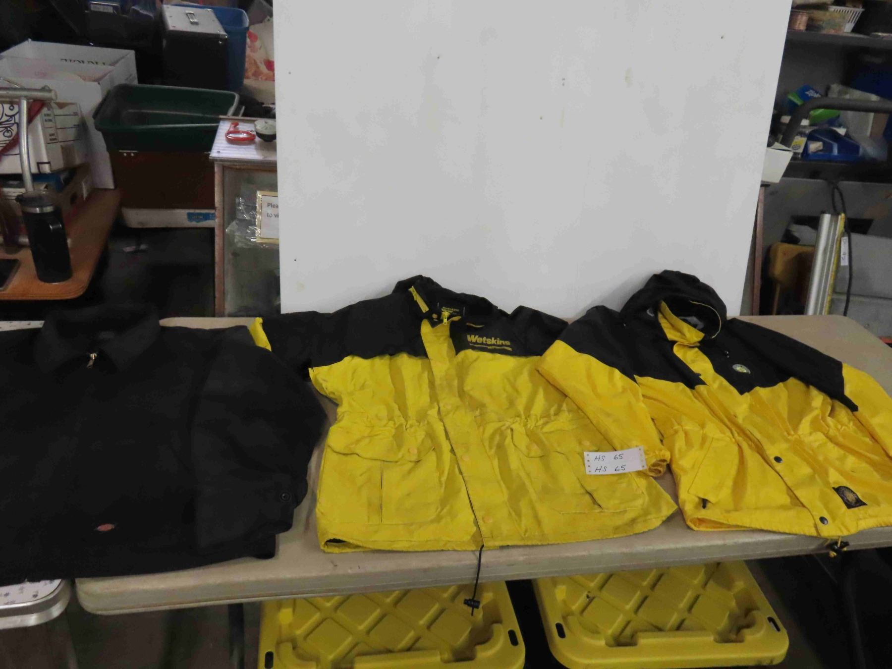 3 Coats : 2 Rain Coats - Wetskins Size Medium , Northern Escape Size Small & Dickies Jacket Size 2XL (Some Tears, See Photos)