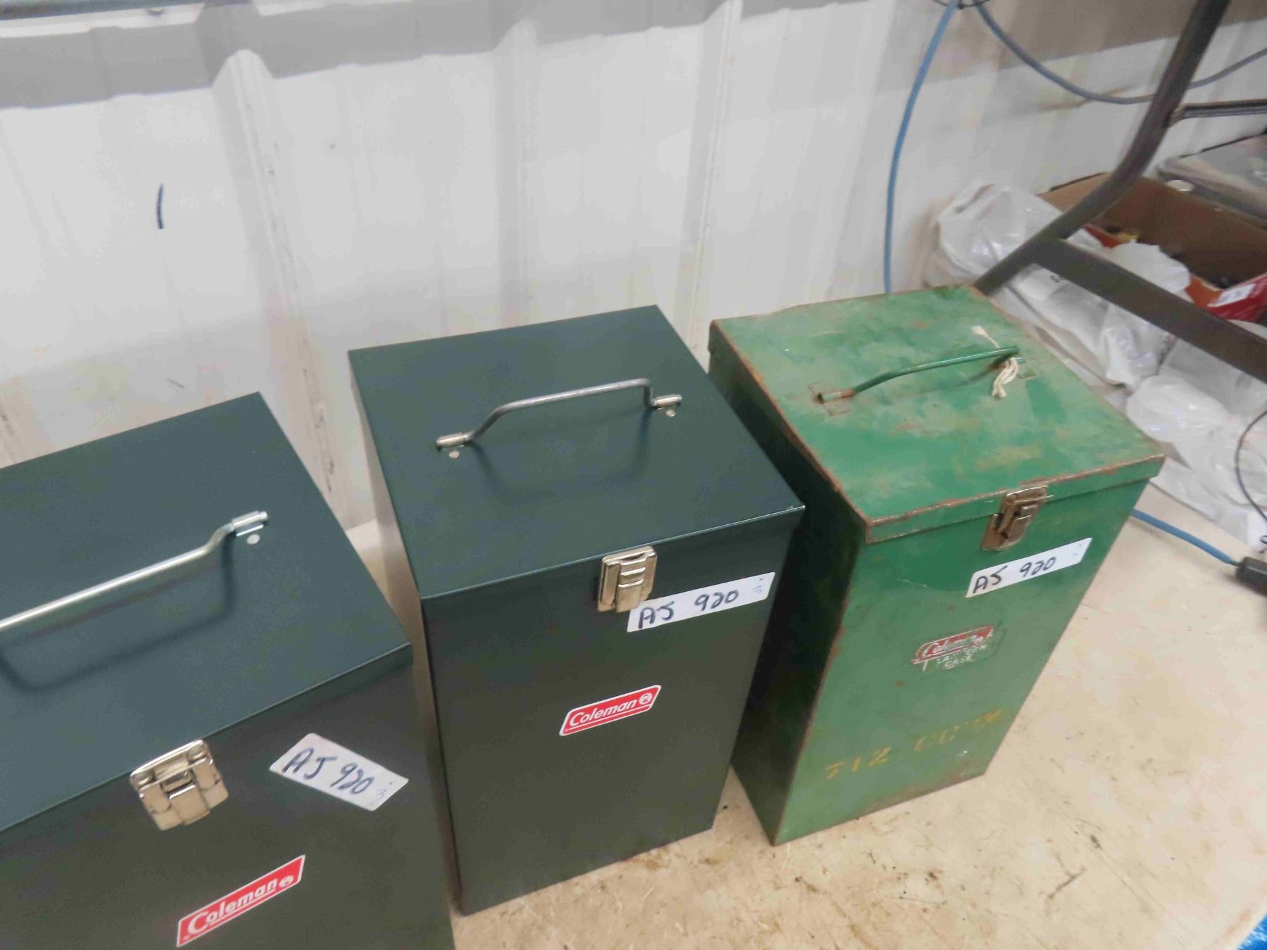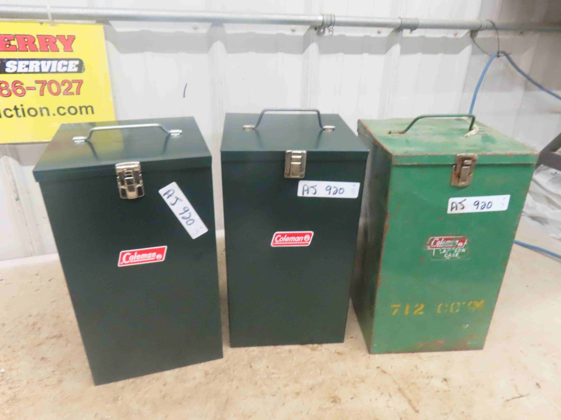 3 Coleman Lantern Metal Containers - 2 Are New Old Stock Model 635 B 300 (NO LANTERNS)