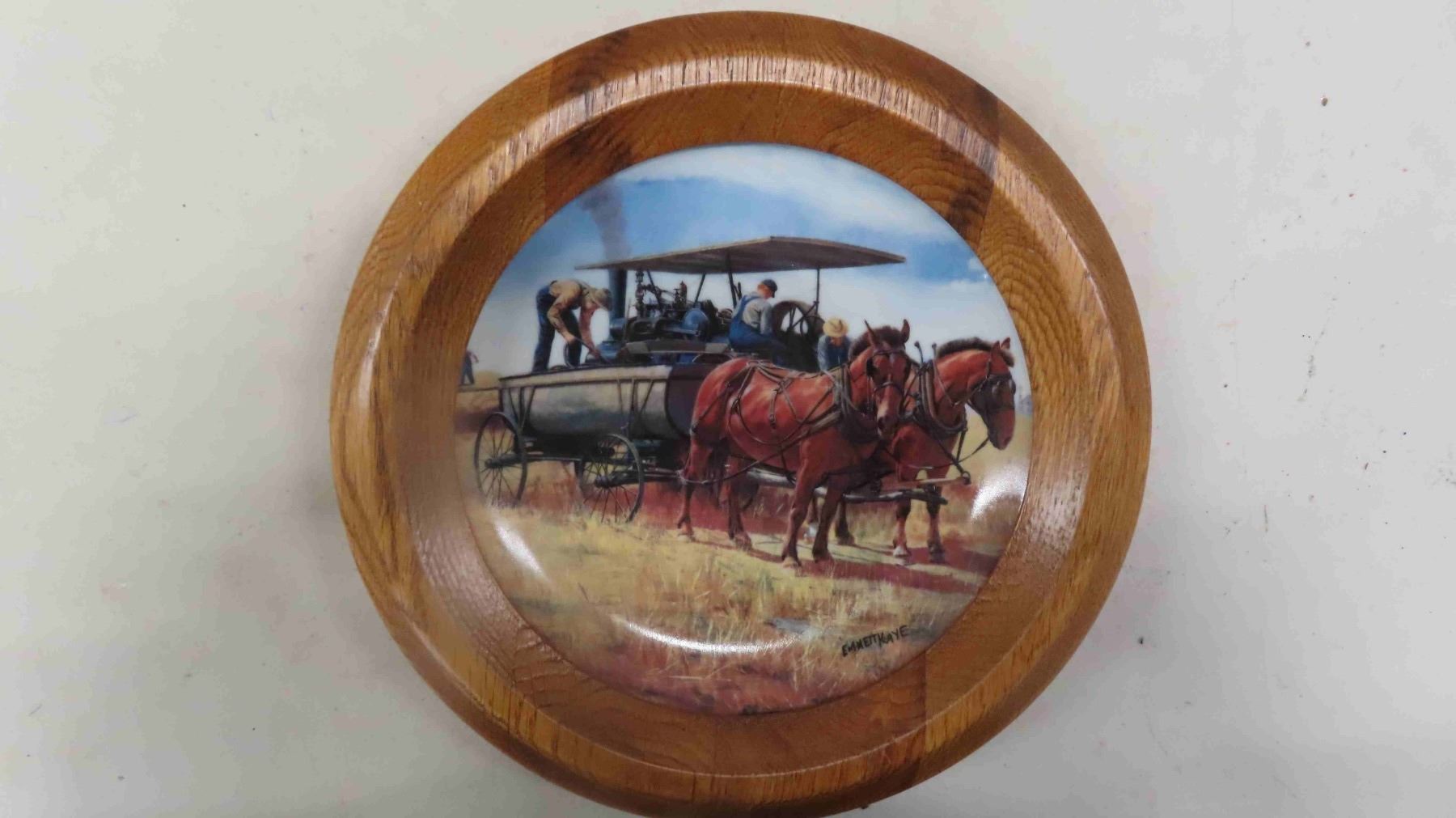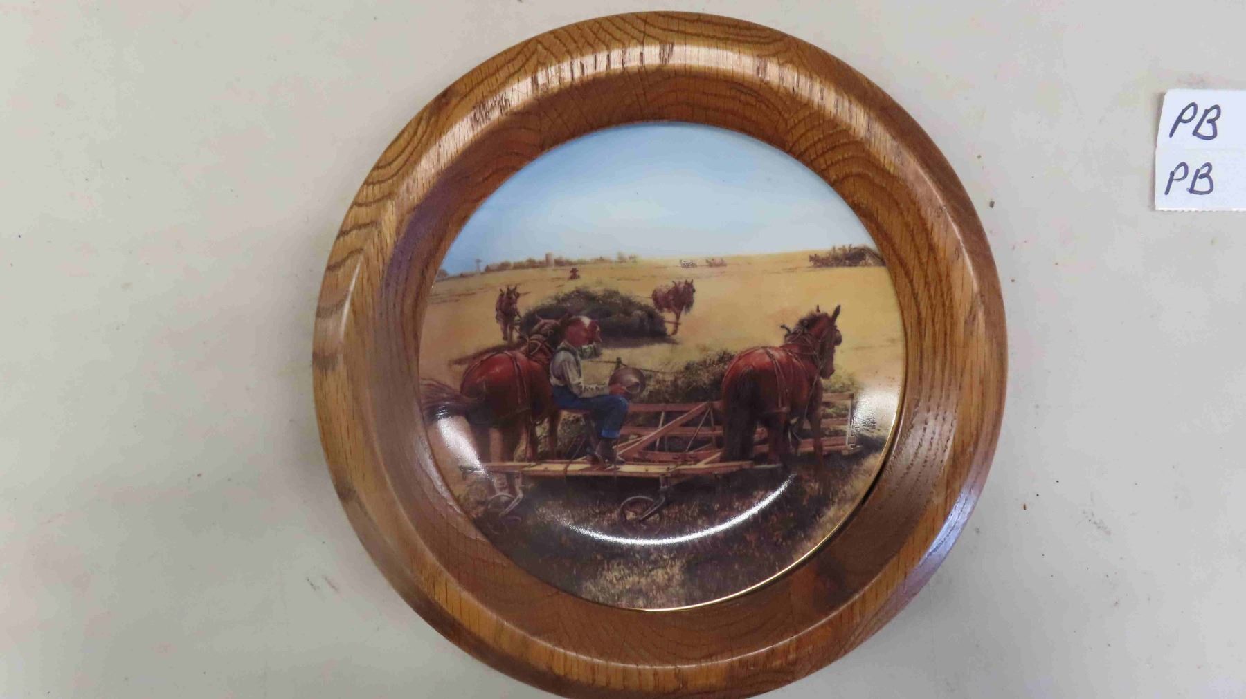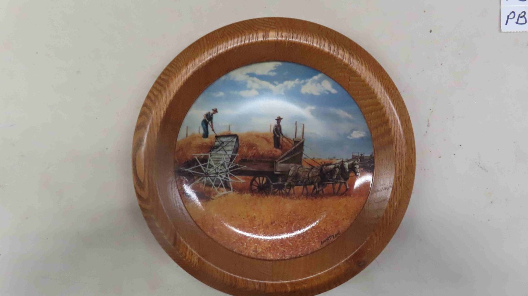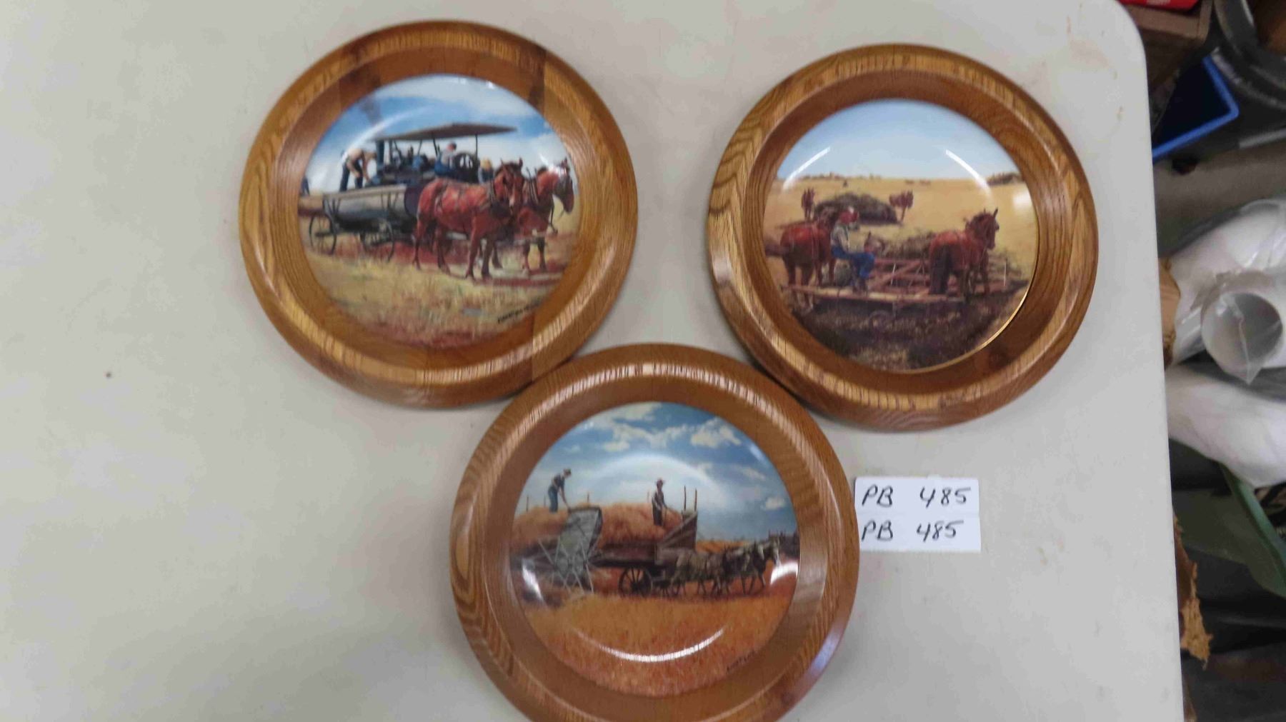3 Collector Plates ' Farming the Heartland' By Emmett Kaye - with Oak Framed