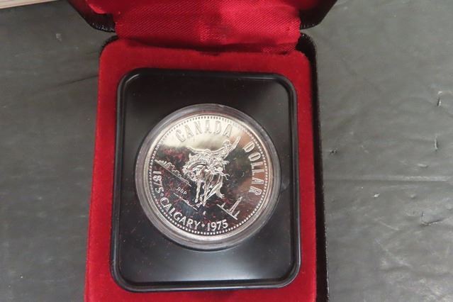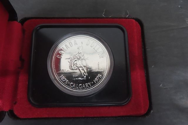 3 Commemorative Canadian Silver Dollar Coins: (2) 1975 Calgary + (1) 1977 Queens Anniversary