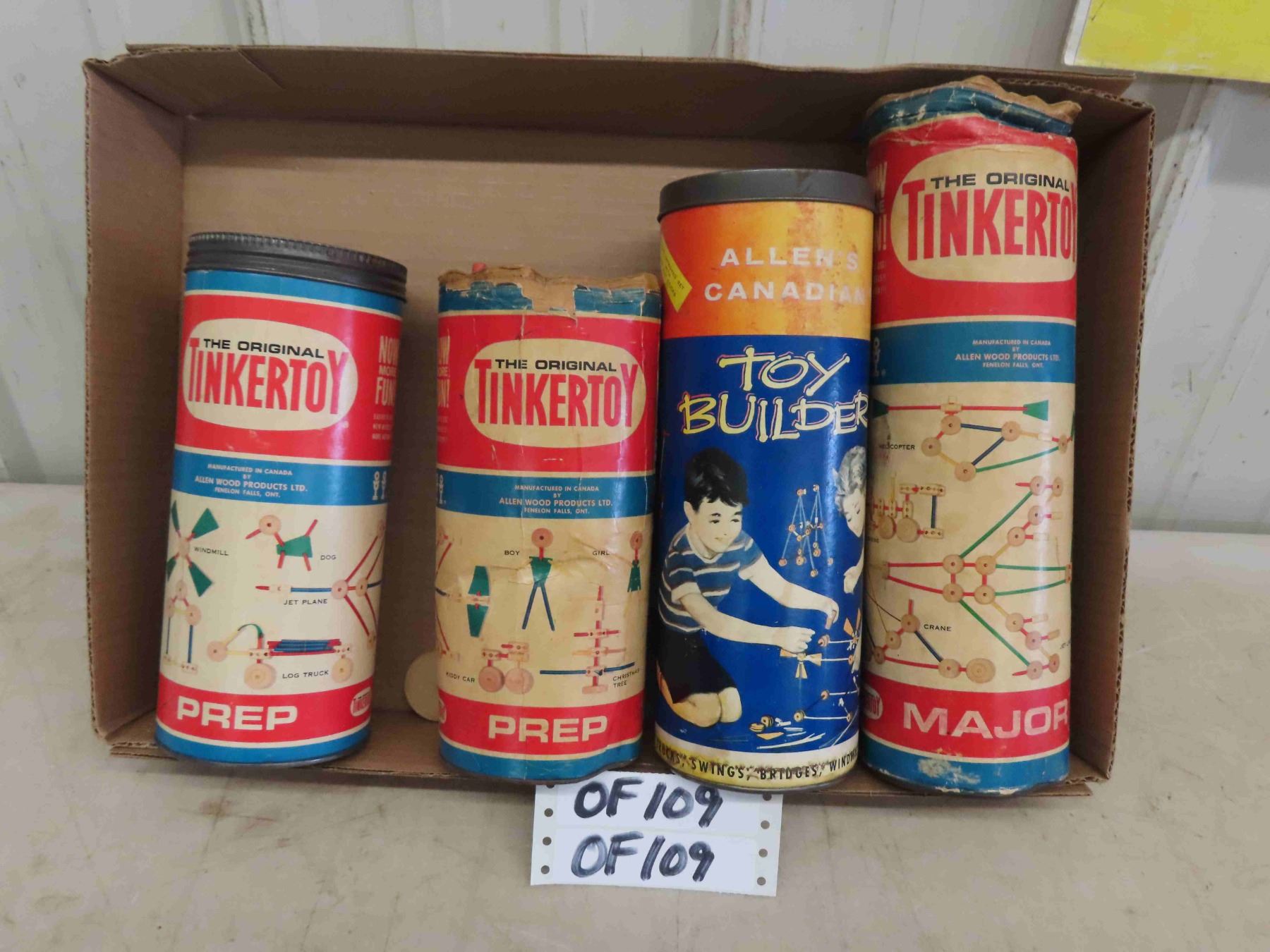 3 Containers of Tinker toys, 1 Container of Allen's Building Blocks - Lots of Contents - 2 Have Lids