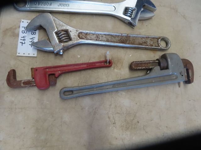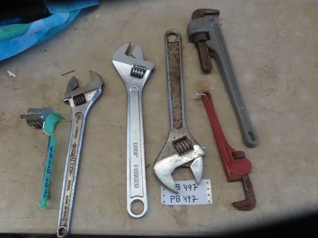 3 Crescent Wrenches, 3 Pipe Wrenches, Tube Bender