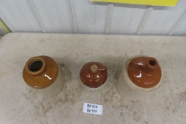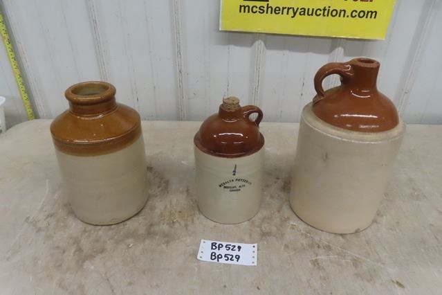 3 Crocks: 1/2 Gal Medalta Jug, 1 Gal No Name, Pickle Crock NO Lid