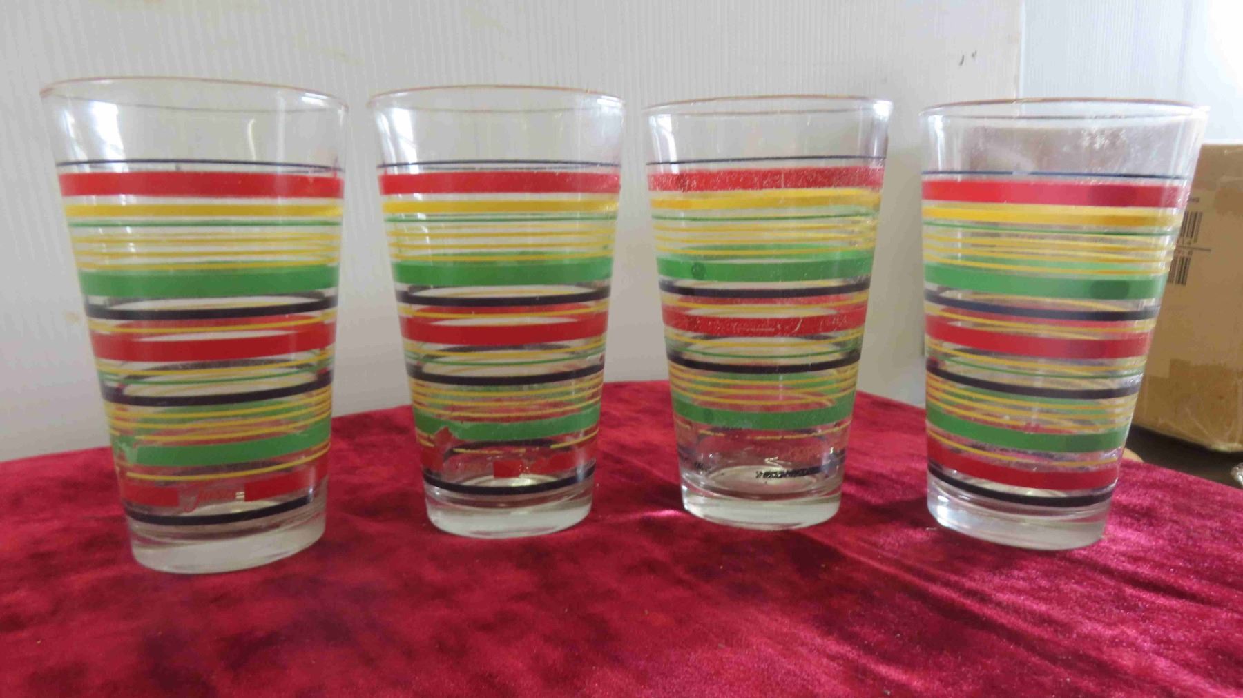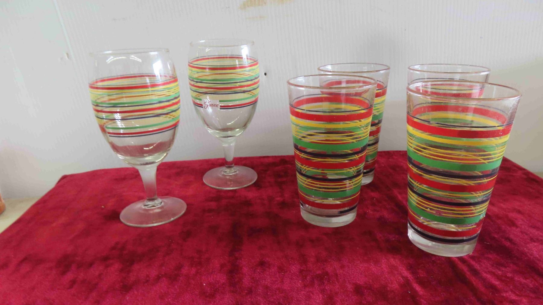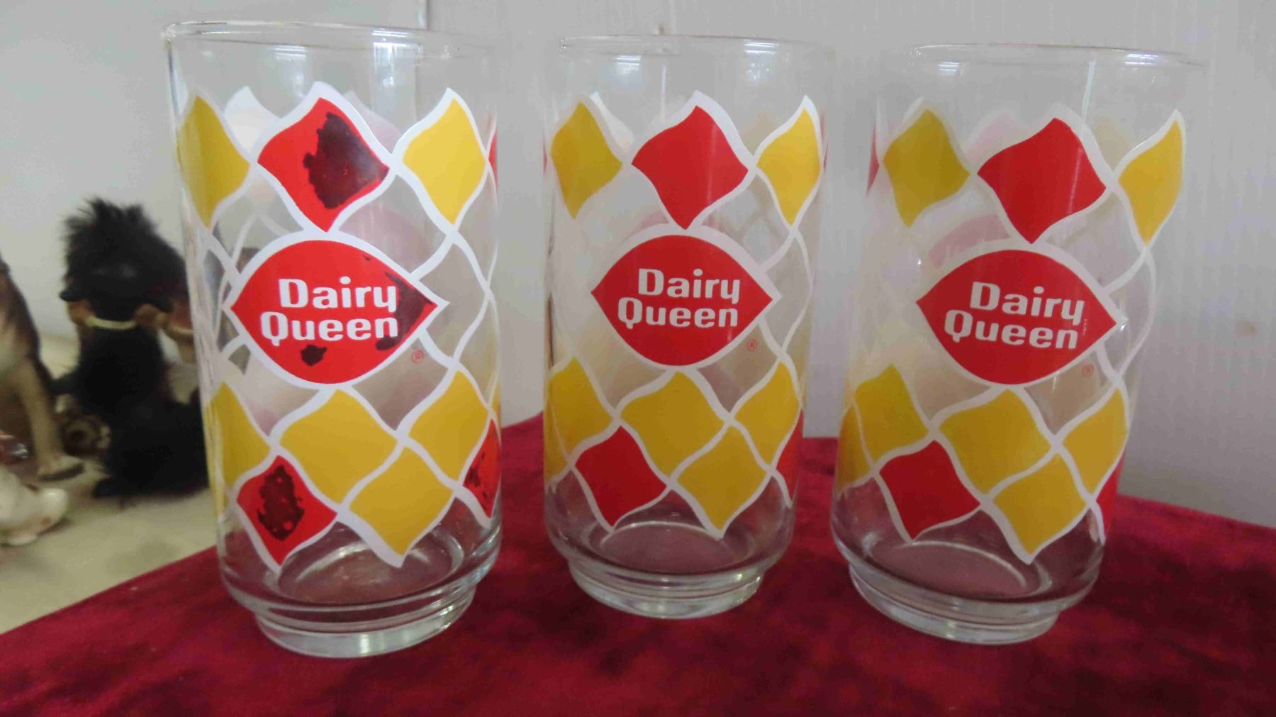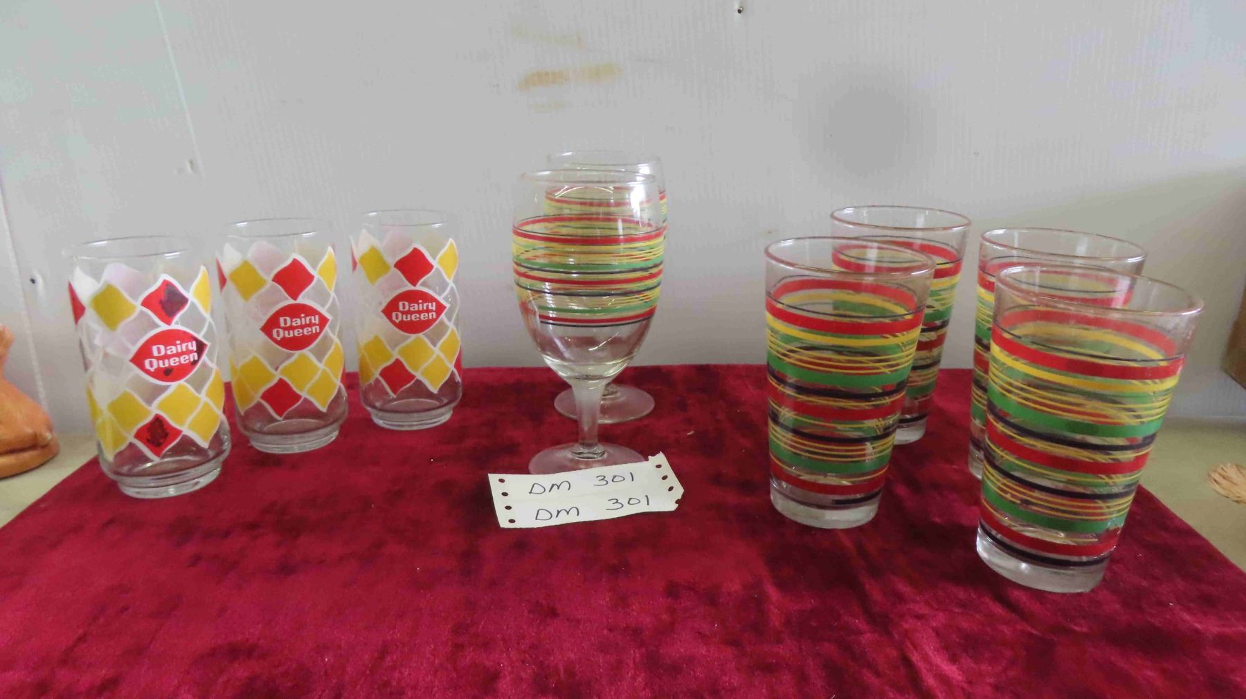 3 Dairy Queen Tall Glasses, 6 Fiesta Striped Glasses