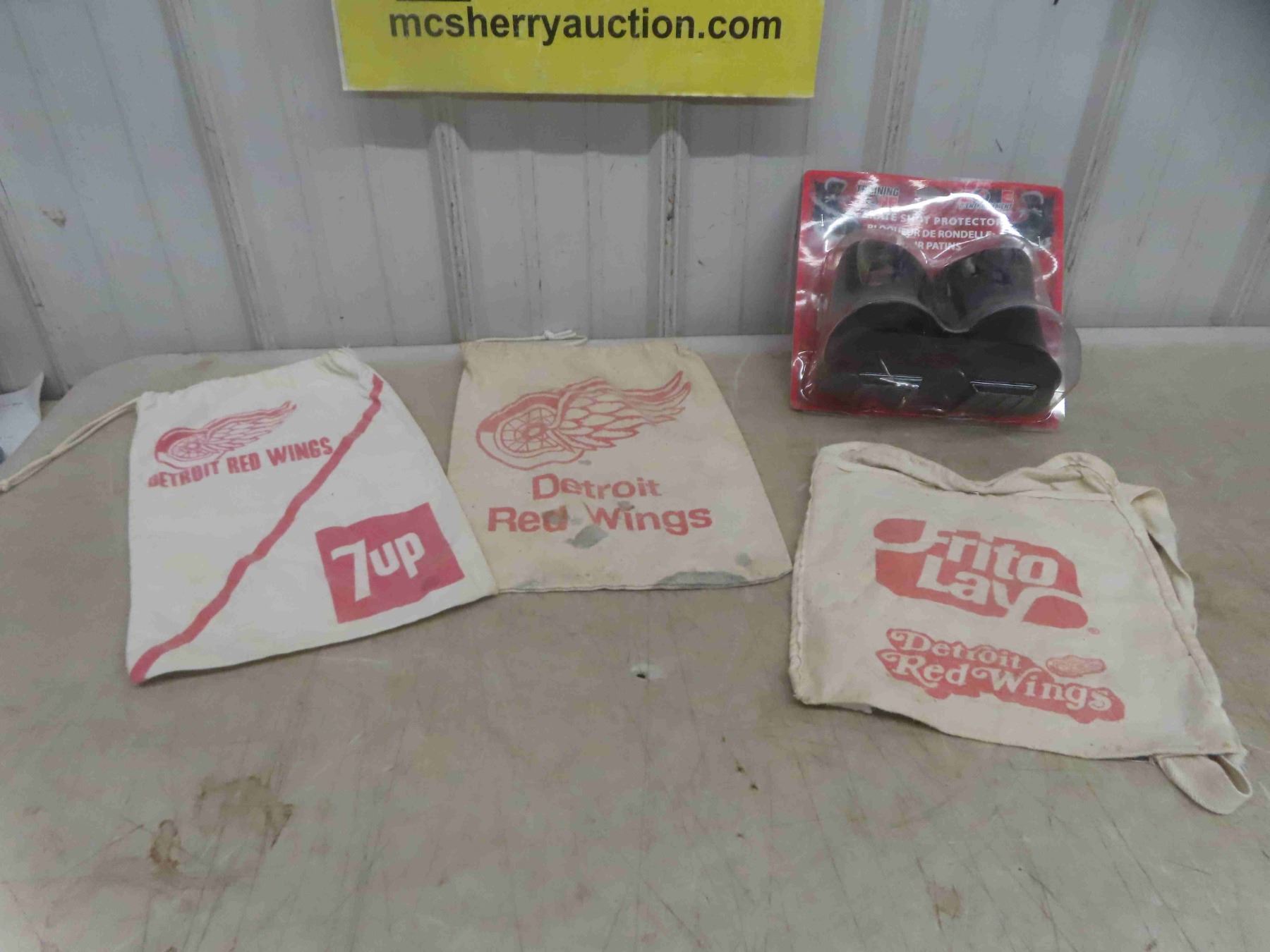 3 Detroit Red Wings Puck Bags , New Old Stock Skate Shot Protecter