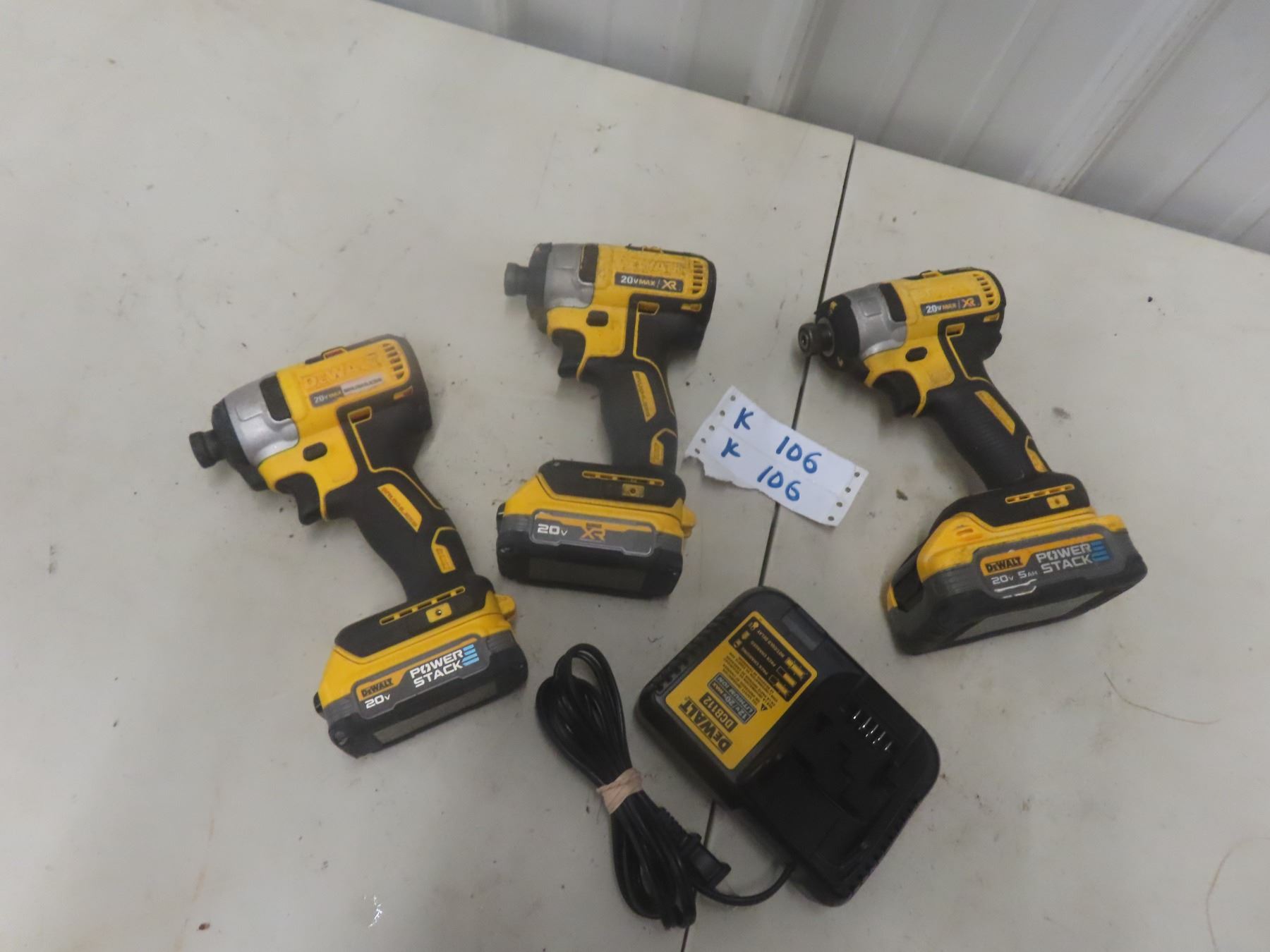3 Dewalt 20V 1/4 Impact with 3 Batteries + Charger-Works