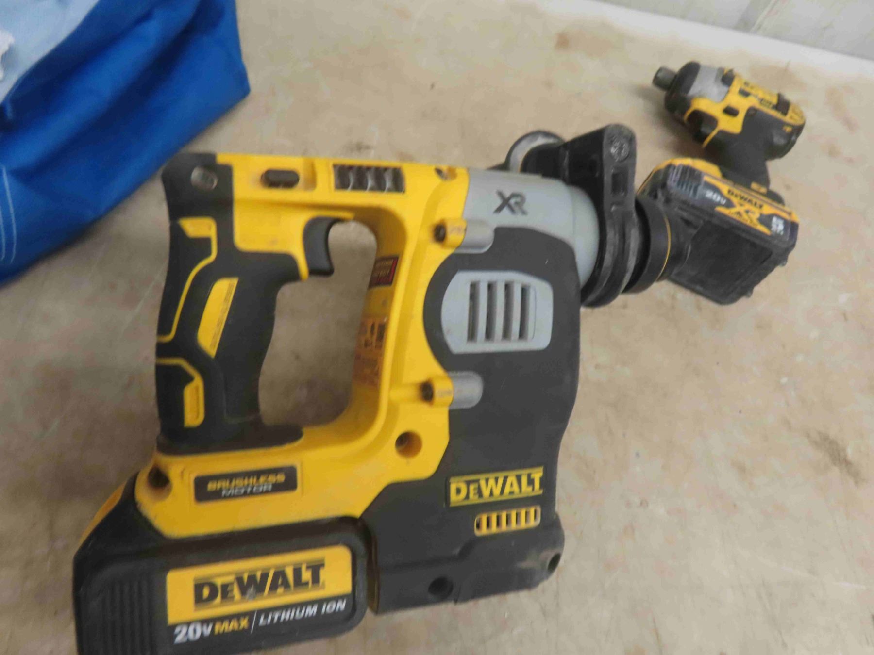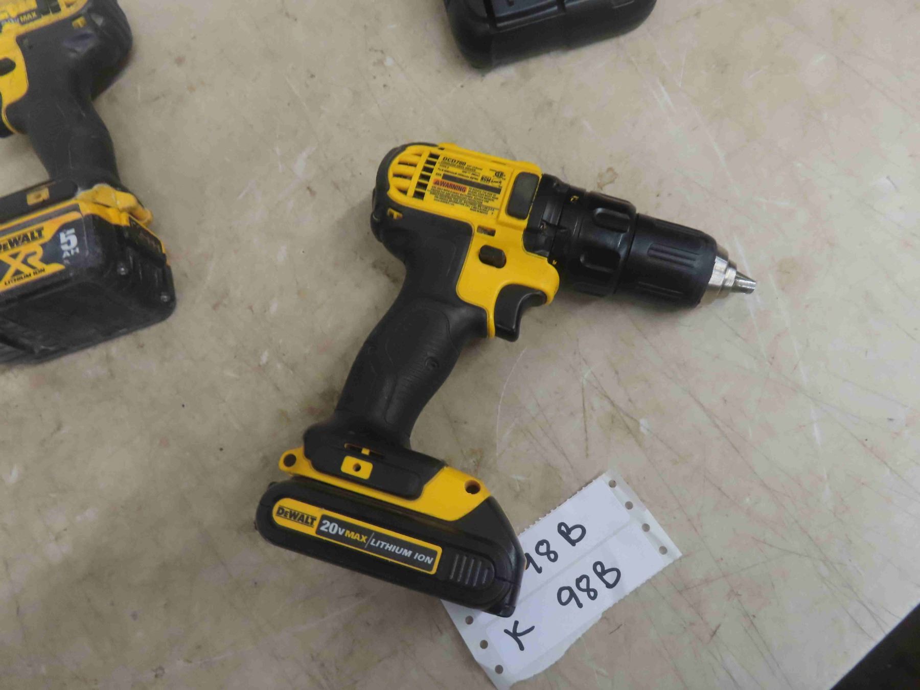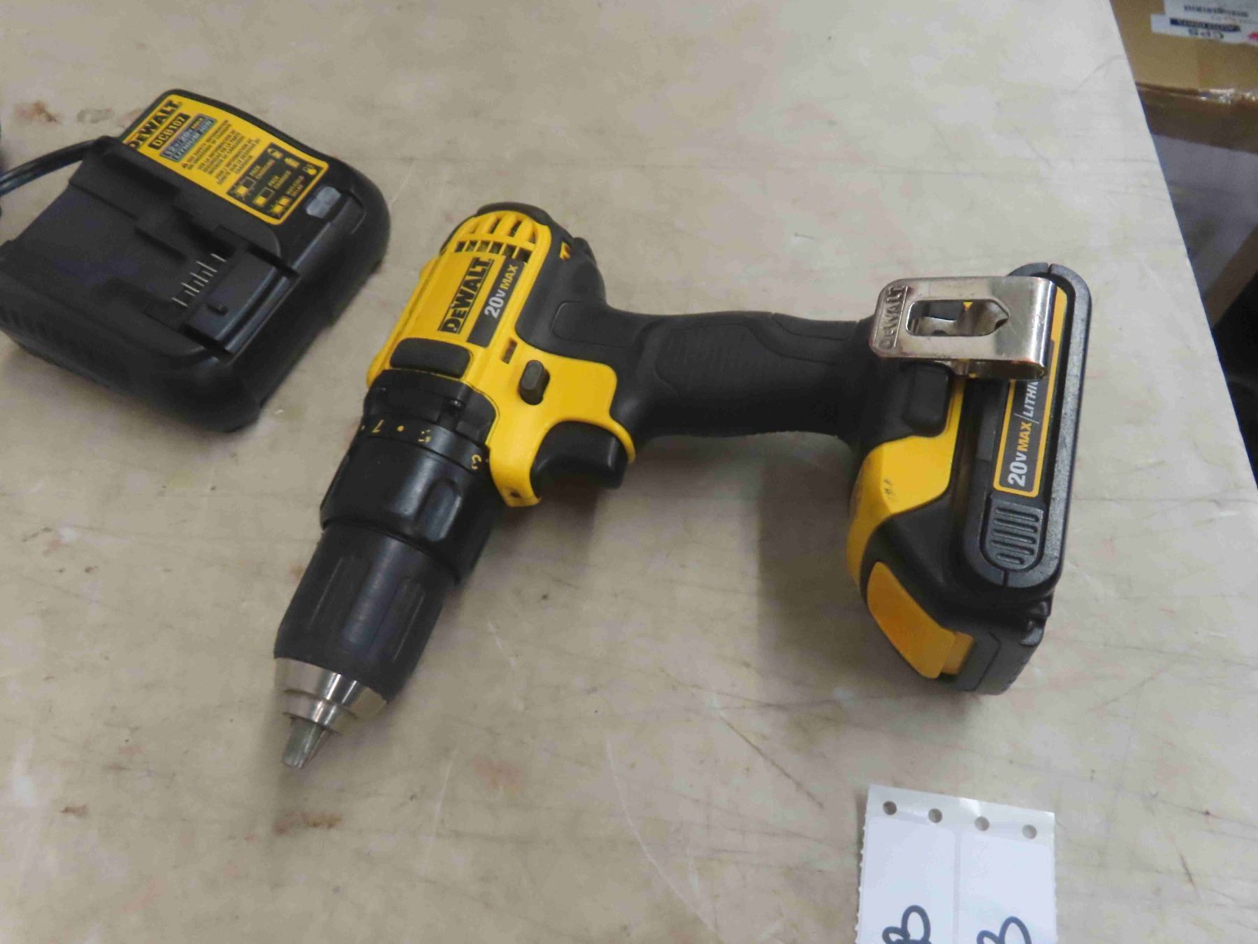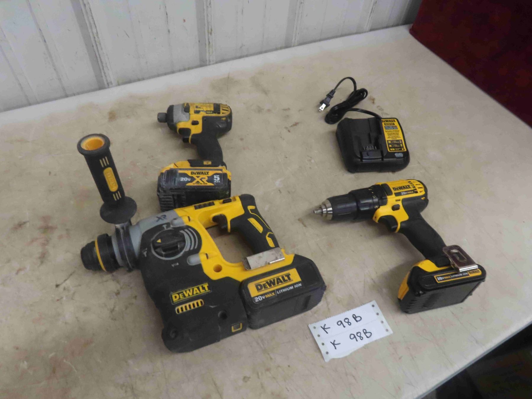 3 Dewalt 20V Tools: 1'' Hammer Drill, 1/4'' Impact, 1/2'' Drill, 3 Batteries & 1 Charger. Tested & Working.