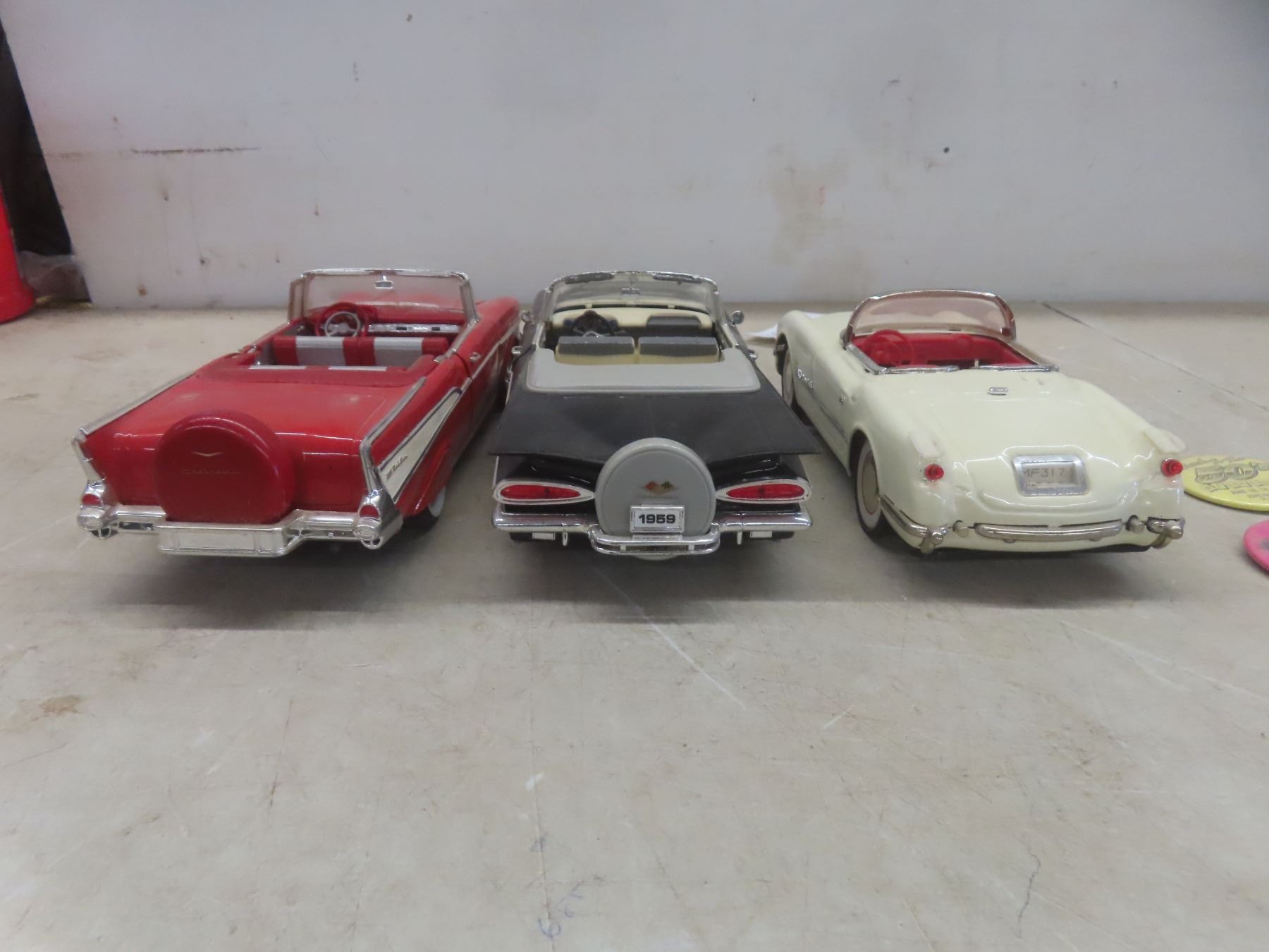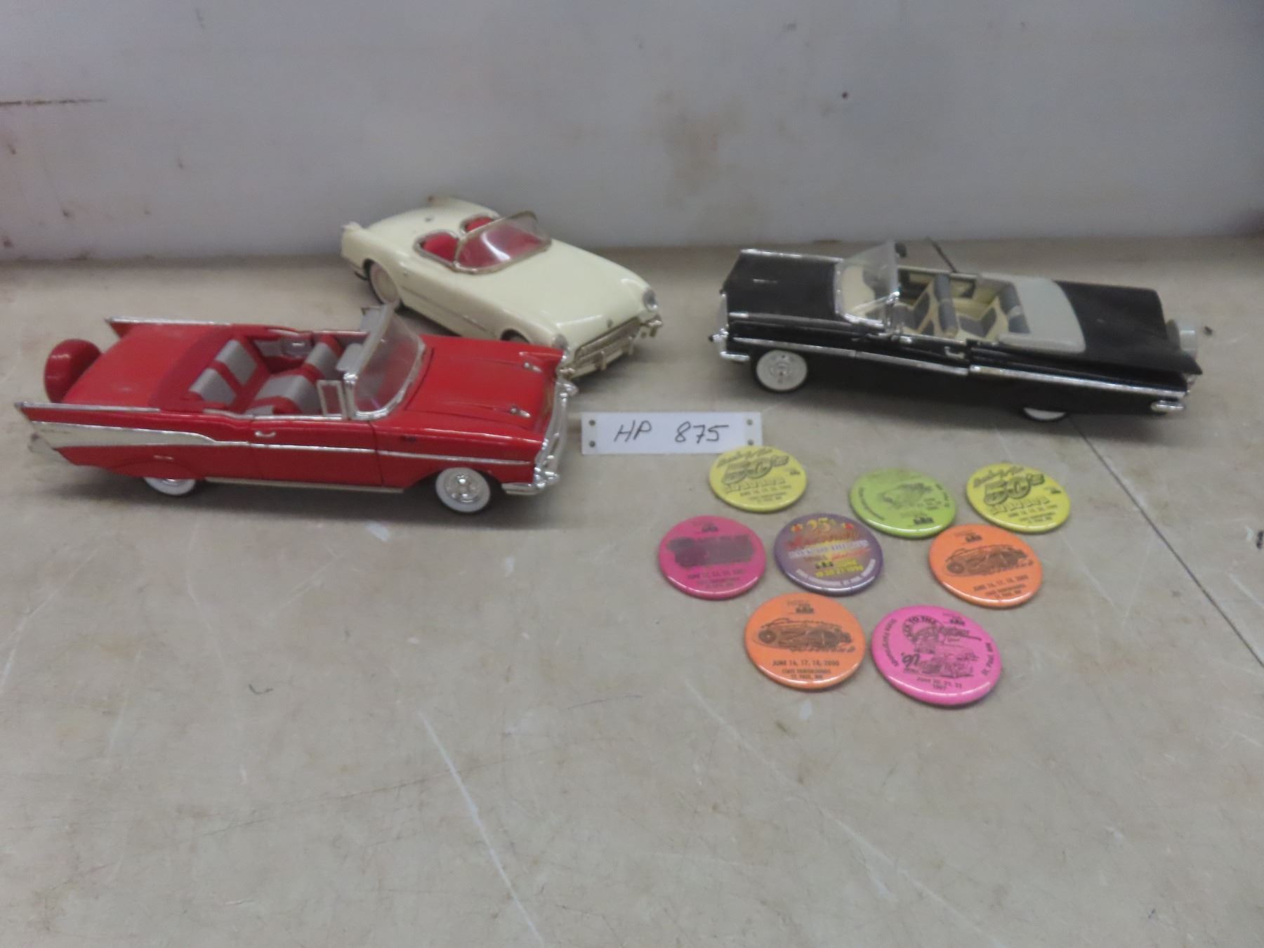 3 Die Cast Convertibles 57 Bel Air 59 Impala 1/18 Scale Pin Back Buttons from "Back to The 50's"