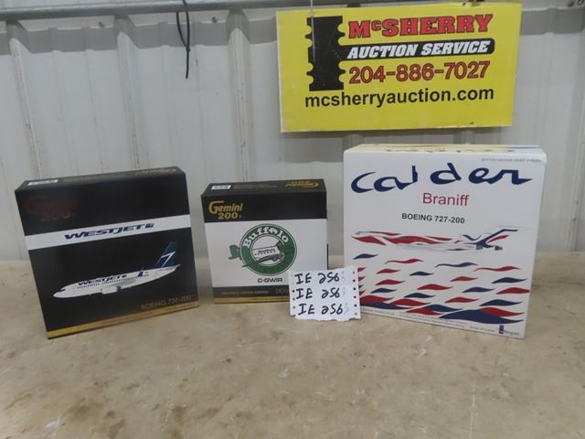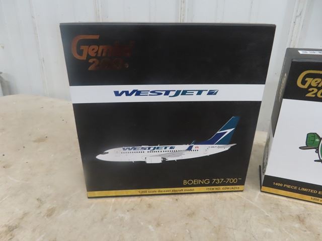 3 Die Cast Planes 1/200 Scale ; Gemini 200 West Jet Boeing 737-700, 1) Gemini 200 Buffalo Airlines Douglas DC-3, 1) Braniff Boeinng 727-200