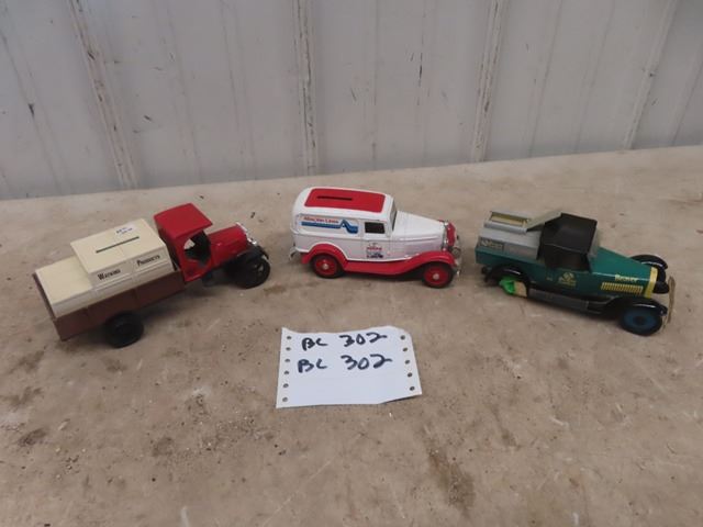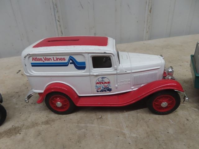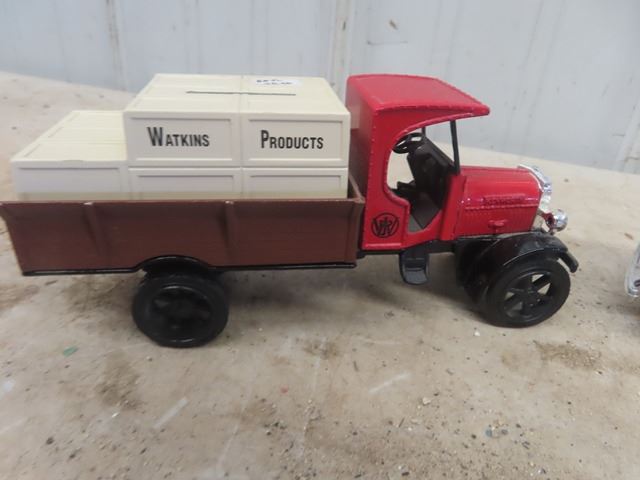 3 Die Cast Trucks ; 1) Atlas, 1) Watkins, 1) Beaver Lumber - Missing 1 Tire