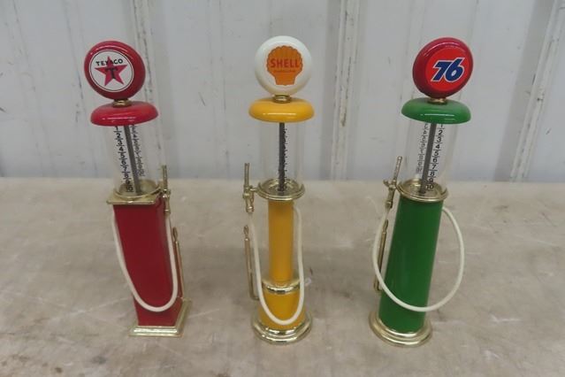 3 Die Cast Vintage Visible Gas Pumps 8'' Tall - Texaco, Shell, 76