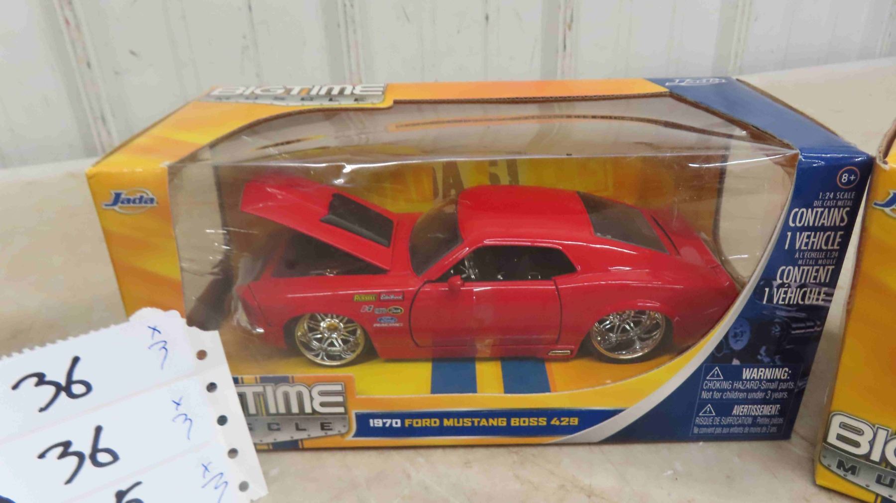 3 Diecast Cars 1:24 Scale: 1963 Chevy Corvette Stingray, (2) 1970 Ford Mustang Boss 429