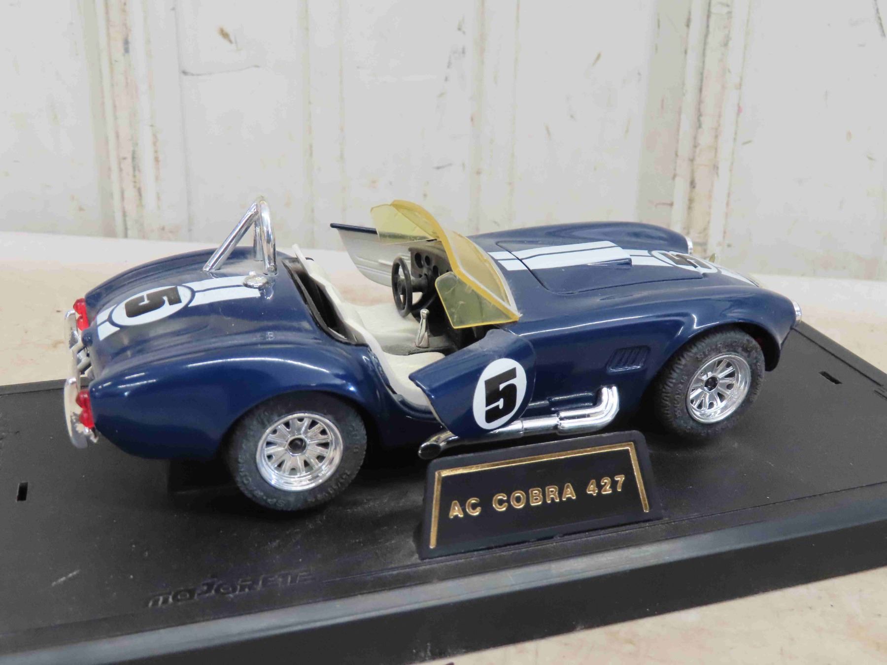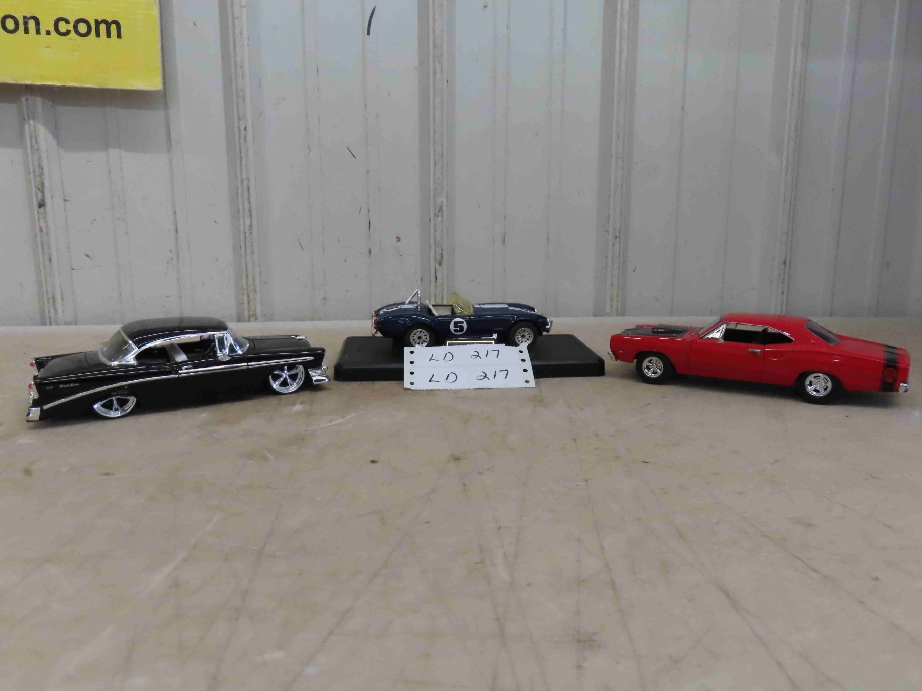 3 Diecast Cars: 1969 Super Bee , 1958 Belair 1:24 , AC Cobra 427 7'' x 2 3/4'' x 2''