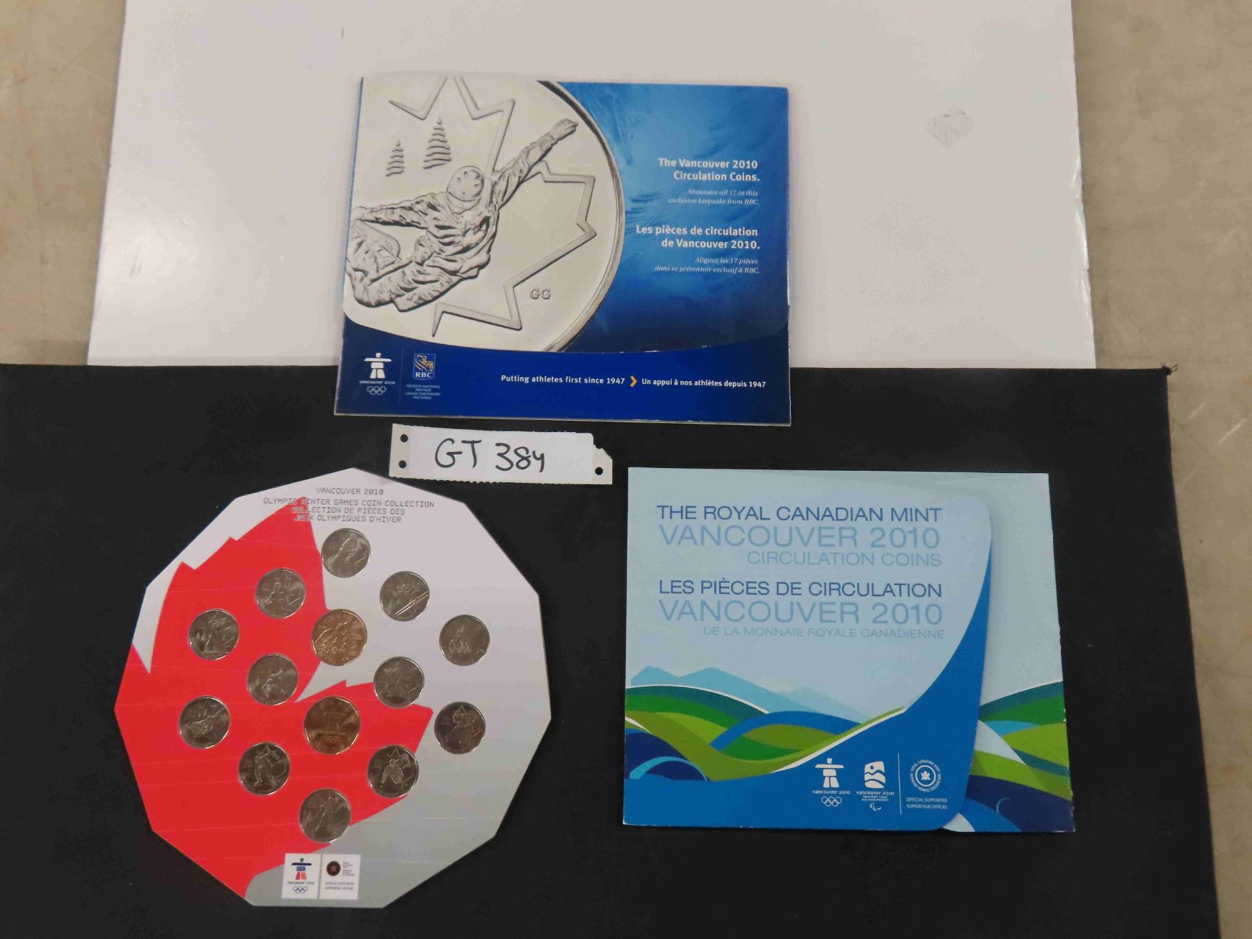 3 Different 2010 Vancouver Olympic Carded Coin Sets - 1 is Missing 1 Coin - Some Colored Coins - Royal Canadian Mint